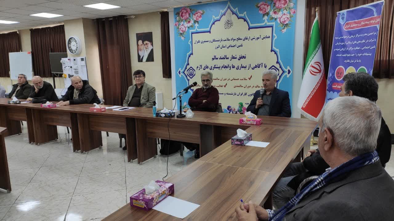 شایان ذکر است همایش ارتقای سطح سواد سلامت بازنشستگان و مستمری بگیران تامین اجتماعی استان البرز با حضور گروه های مختلف و روزهای چهارشنبه هر هفته در محل کانون بازنشستگان و مستمری بگیران شهرستان کرج برگزار میگردد.