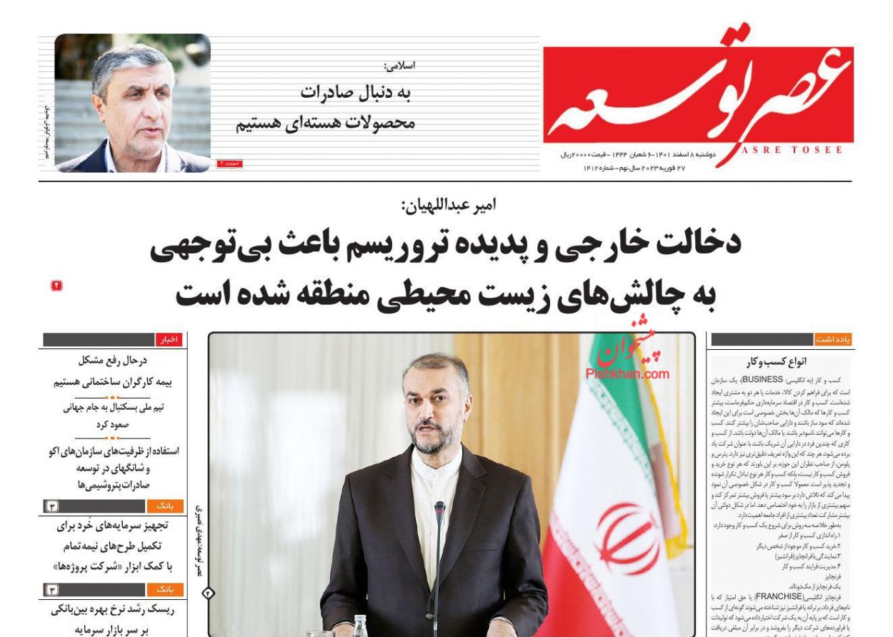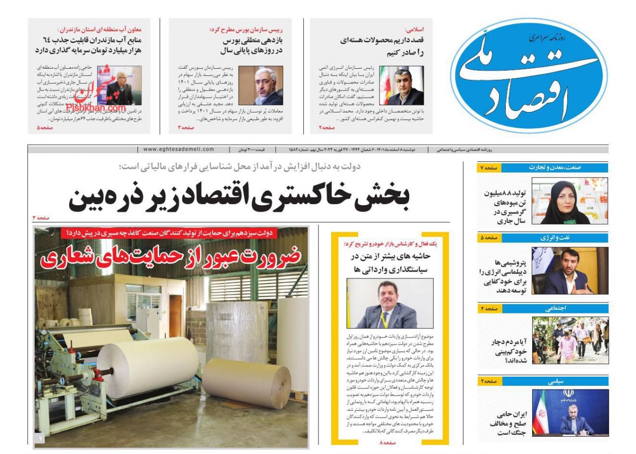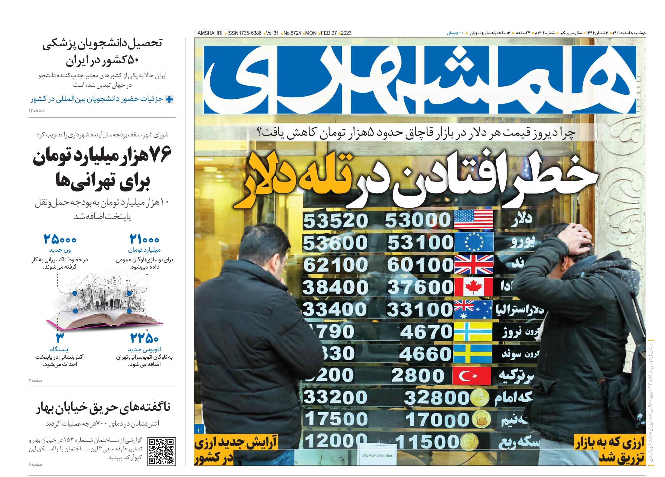 پایگاه خبری امید بانوان اخبار پیشخوان روزنامه صفحه اول روزنامههای 8 اسفند ۱۴۰۱ دوشنبه، 08 اسفند 1401 - 09:33 صفحه اول روزنامههای 8 اسفند ۱۴۰۱ صفحه اول برخی روزنامههای هشتم اسفند ۱۴۰۱ را مشاهده میکنید. کدخبر: 12662 omidebanovan.ir/@12662