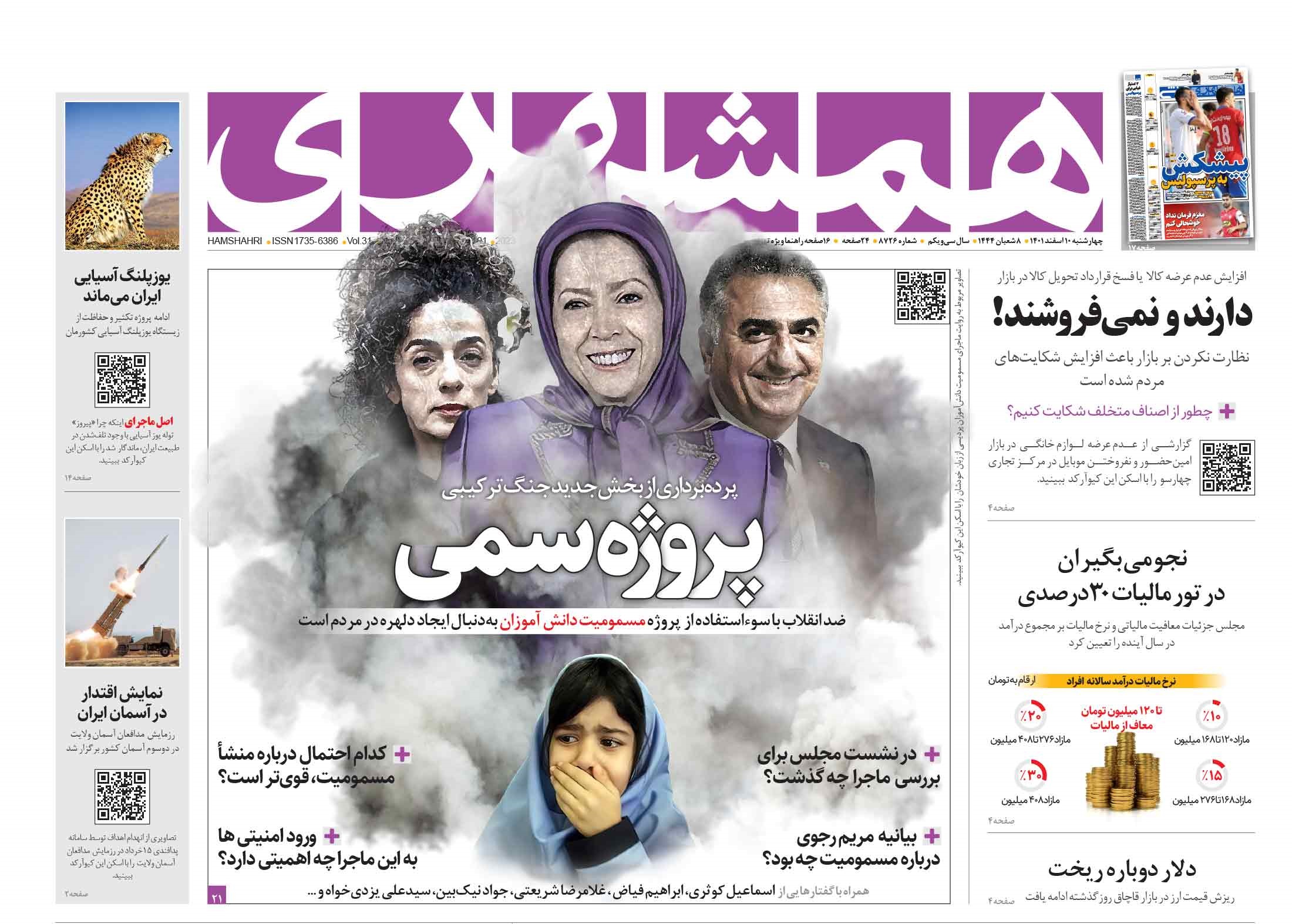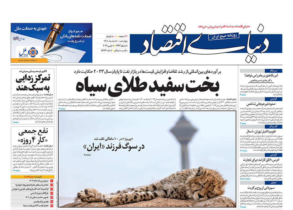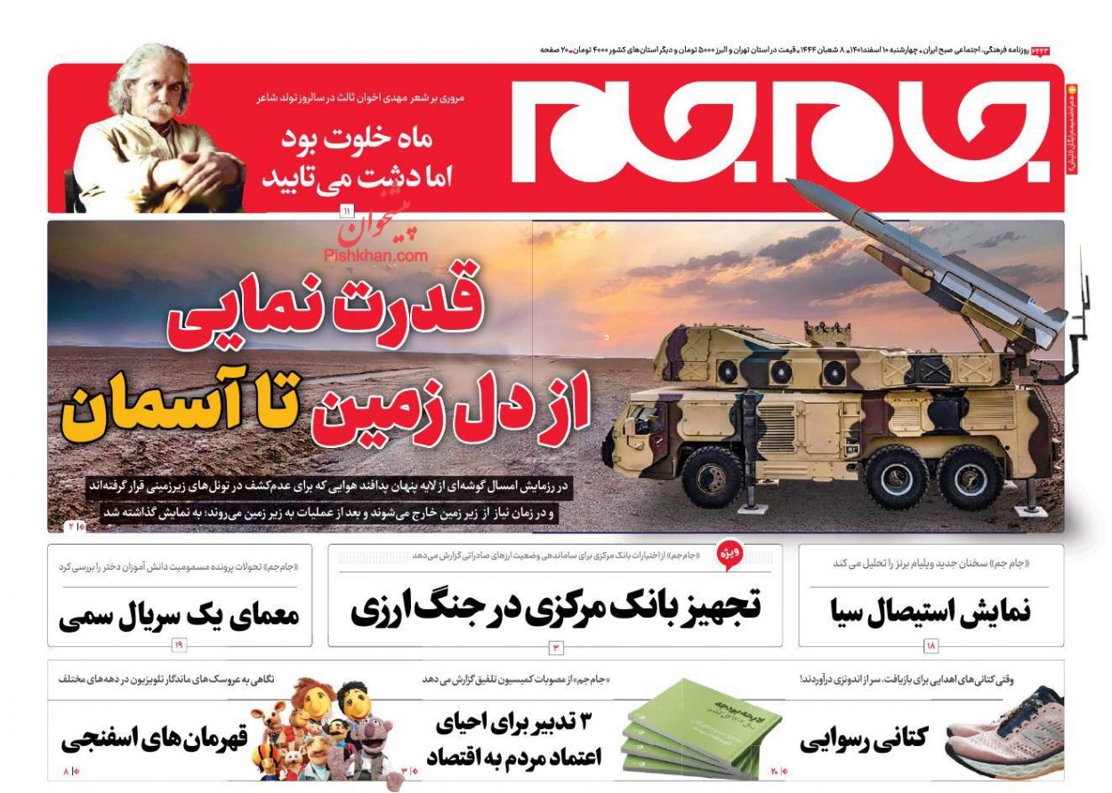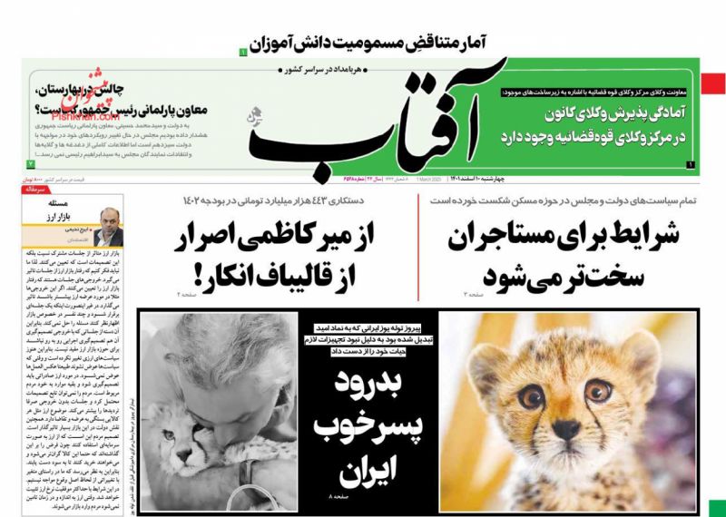 پایگاه خبری امید بانوان اخبار پیشخوان روزنامه صفحه اول روزنامههای دهم اسفند ۱۴۰۱ چهارشنبه، 10 اسفند 1401 - 11:10 صفحه اول روزنامههای دهم اسفند ۱۴۰۱ صفحه اول روزنامههای چهارشنبه دهم اسفند ۱۴۰۱ را مشاهده میکنید. کدخبر: 12711 omidebanovan.ir/@12711