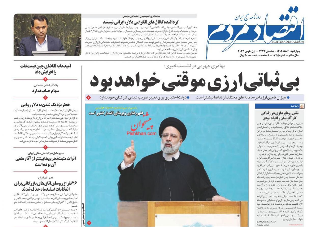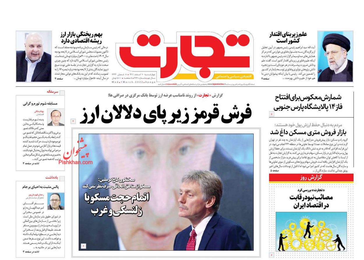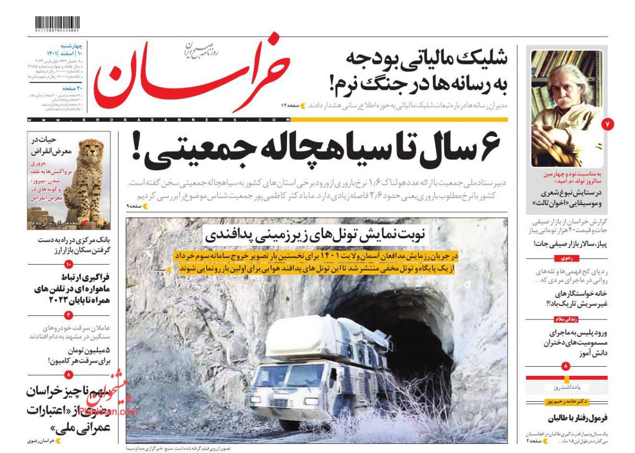پایگاه خبری امید بانوان اخبار پیشخوان روزنامه صفحه اول روزنامههای دهم اسفند ۱۴۰۱ چهارشنبه، 10 اسفند 1401 - 11:10 صفحه اول روزنامههای دهم اسفند ۱۴۰۱ صفحه اول روزنامههای چهارشنبه دهم اسفند ۱۴۰۱ را مشاهده میکنید. کدخبر: 12711 omidebanovan.ir/@12711