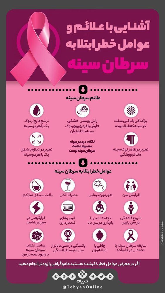 هر ساله تعداد زیادی در سراسر دنیا مبتلا به سرطان سینه میشوند. هیچ کس نمیداند سرطان سینه در چه زمانی ایجاد شده است، اما آگاهی از ریسک فاکتورها یا عوامل خطر سرطان سینه ممکن است به شما در انجام اقدامات پیشگیرانه برای کاهش ابتلا به بیماری کمک کند. ممکن است برخی از زنان مبتلا به سرطان سینه، هیچ یک از عوامل خطر را تجربه نکرده باشند.