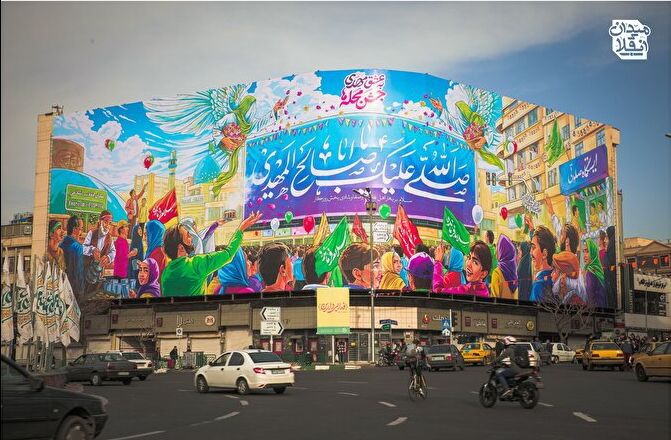 طرح دیوارنگاره میدان انقلاب تهران با تصویرسازی از برگزاری جشن نیمه شعبان