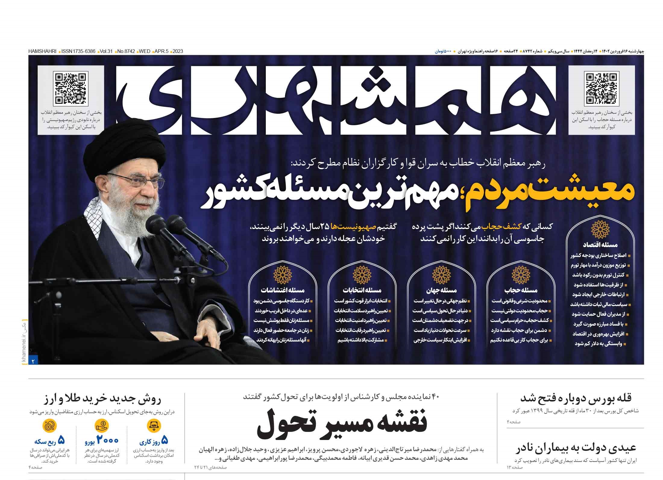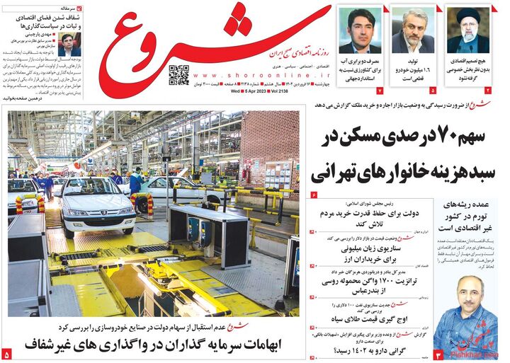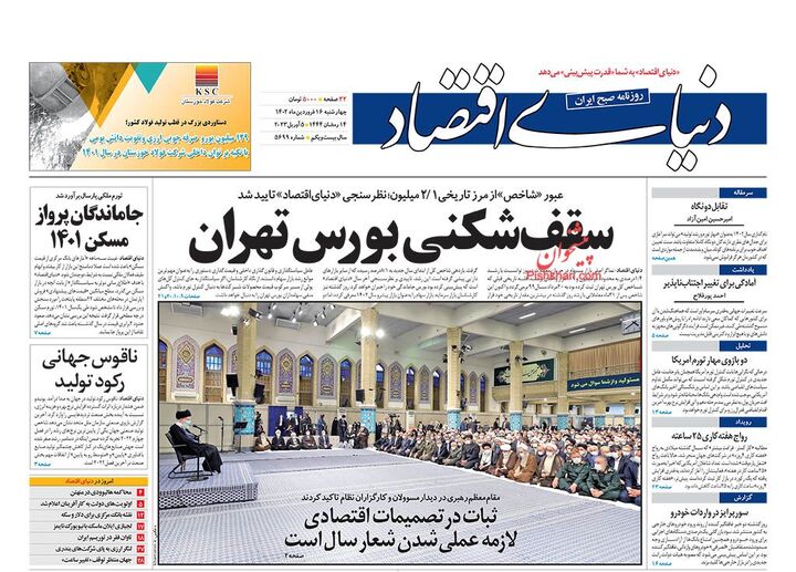پایگاه خبری امید بانوان اخبار پیشخوان روزنامه صفحه اول روزنامههای 16 فروردین 1402 چهارشنبه، 16 فروردین 1402 - 12:26 صفحه اول روزنامههای 16 فروردین 1402 صفحه اول روزنامههای چهارشنبه شانزدهم فروردین 1402 را مشاهده میکنید. کدخبر: 13250 omidebanovan.ir/@13250