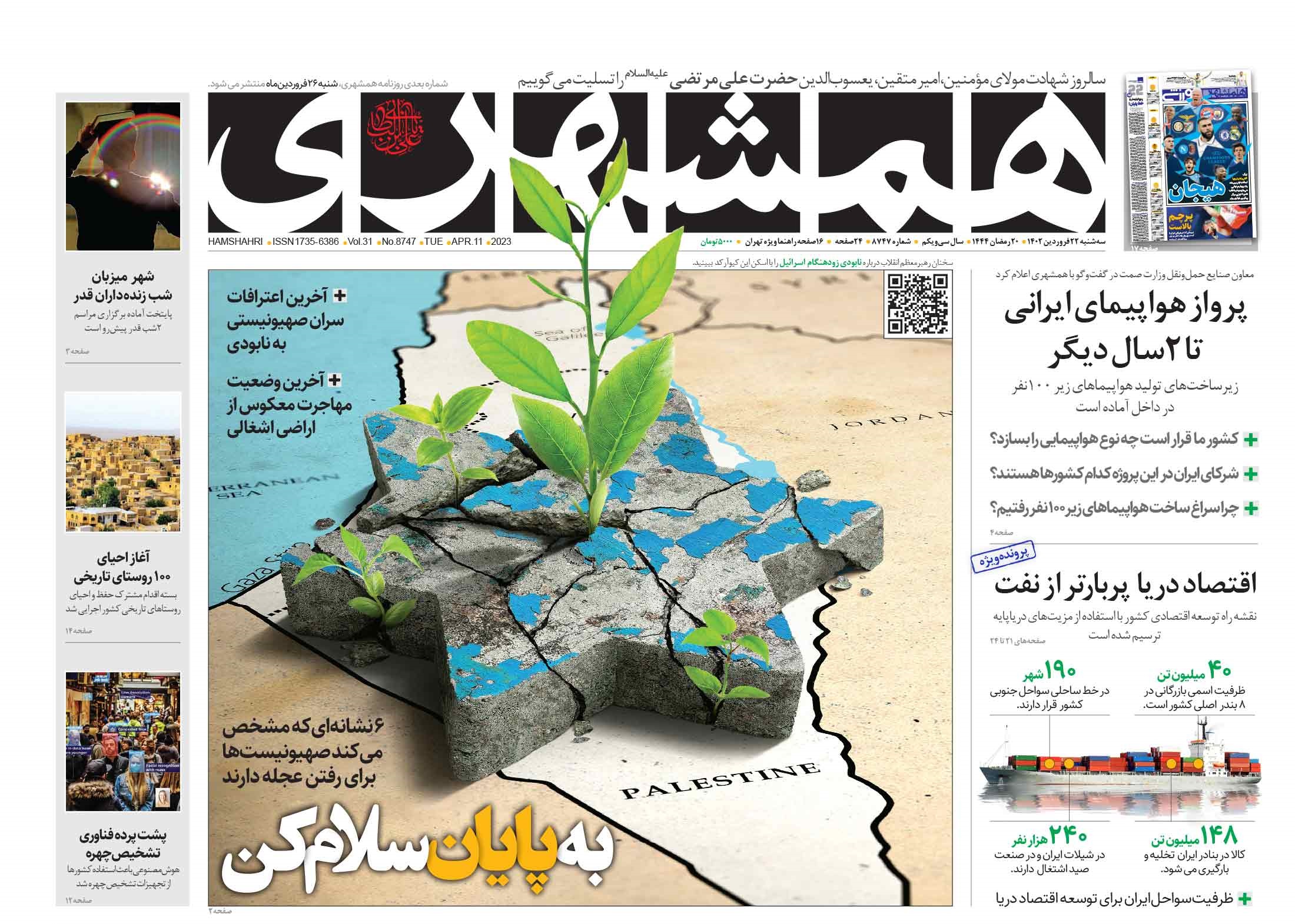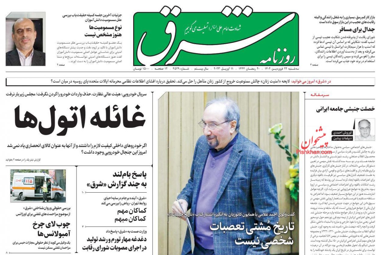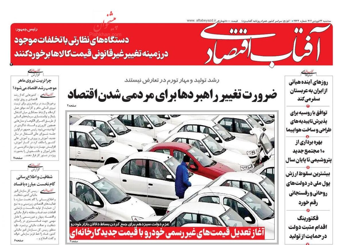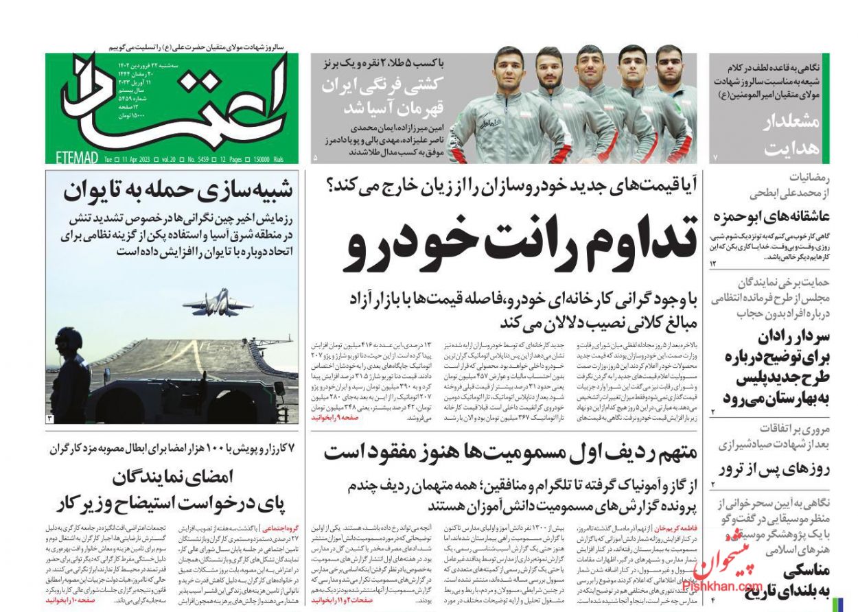 پایگاه خبری امید بانوان اخبار پیشخوان روزنامه صفحه اول روزنامههای 22 فروردین 1402 سهشنبه، 22 فروردین 1402 - 11:39 صفحه اول روزنامههای 22 فروردین 1402 صفحه اول روزنامههای سه شنبه بیست و دوم فروردین 1402 را مشاهده میکنید. کدخبر: 13340 omidebanovan.ir/@13340