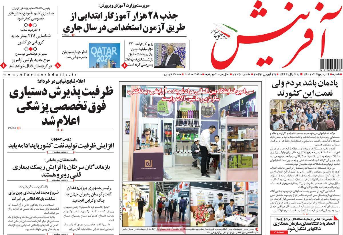 پایگاه خبری امید بانوان اخبار پیشخوان روزنامه صفحه اول روزنامههای 9 اردیبهشت 1402 شنبه، 09 اردیبهشت 1402 - 08:41 صفحه اول روزنامههای 9 اردیبهشت 1402 صفحه اول روزنامههای شنبه نهم اردیبهشت 1402 را مشاهده میکنید. کدخبر: 13542 omidebanovan.ir/@13542