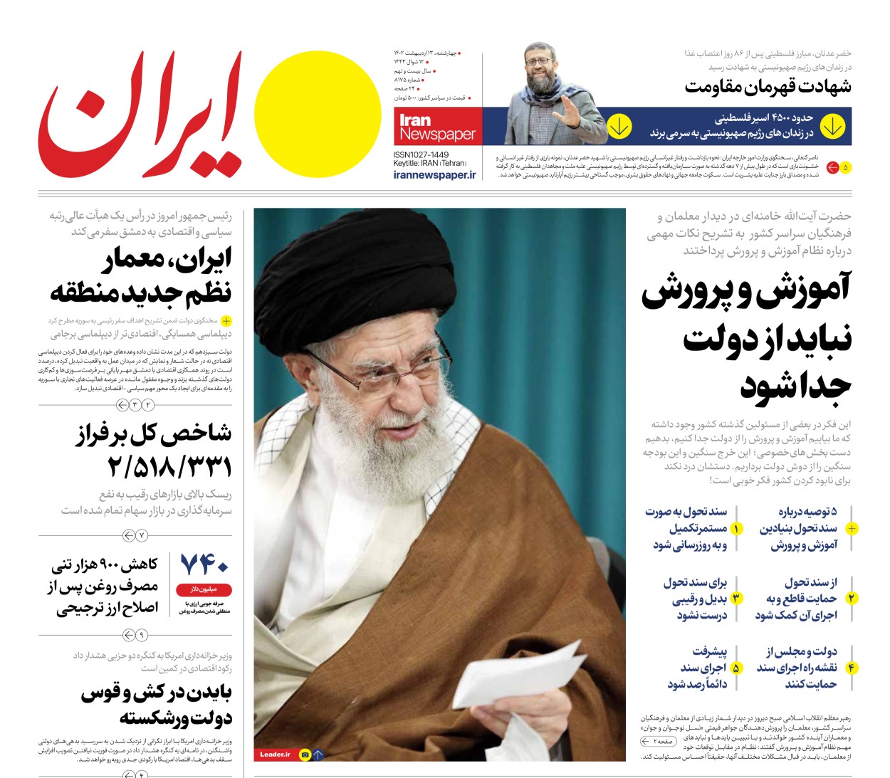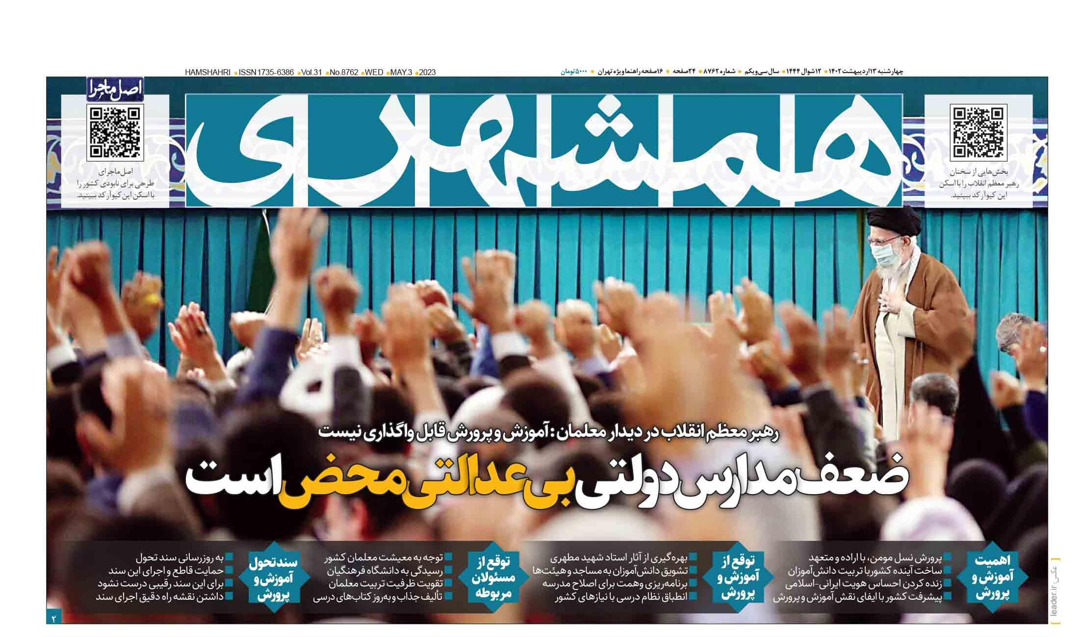 پایگاه خبری امید بانوان اخبار پیشخوان روزنامه صفحه اول روزنامههای 13 اردیبهشت 1402 چهارشنبه، 13 اردیبهشت 1402 - 09:13 صفحه اول روزنامههای 13 اردیبهشت 1402 صفحه اول روزنامههای چهارشنبه دوازدهم اردیبهشت 1402 را مشاهده میکنید. کدخبر: 13593 omidebanovan.ir/@13593