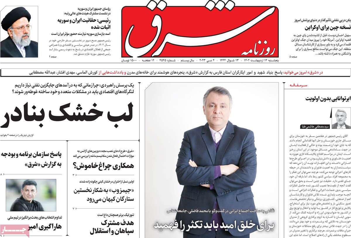 پایگاه خبری امید بانوان اخبار پیشخوان روزنامه صفحه اول روزنامههای 14 اردیبهشت 1402 پنجشنبه، 14 اردیبهشت 1402 - 08:36 صفحه اول روزنامههای 14 اردیبهشت 1402 صفحه اول روزنامههای پنجشنبه چهاردهم اردیبهشت 1402 را مشاهده میکنید. کدخبر: 13608 omidebanovan.ir/@13608