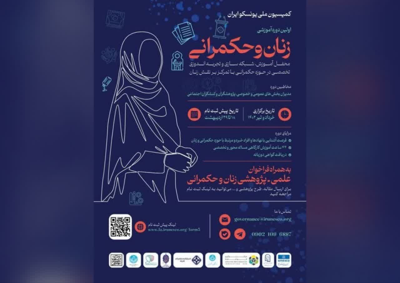 نخستین دوره آموزشی زنان و حکمرانی به همت کمیسیون ملی یونسکو-ایران و با همکاری معاونت ریاست جمهوری در امور زنان و خانواده، دانشکده حکمرانی دانشگاه تهران، اندیشکده حکمرانی دانشگاه صنعتی شریف، خانه خلاق و مرکز نوآوری قوه مقننه، پژوهشکده علم و تحول راهبردی، مرکز زنان و امور خانواده دانشگاه تهران و بنیاد بینالمللی گوهرشاد خرداد سال جاری برگزار میشود.