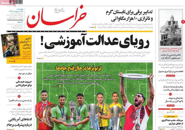 پایگاه خبری امید بانوان اخبار پیشخوان روزنامه صفحه اول روزنامههای 27 اردیبهشت 1402 چهارشنبه، 27 اردیبهشت 1402 - 08:24 صفحه اول روزنامههای 27 اردیبهشت 1402 صفحه اول روزنامههای چهارشنبه بیست و هفتم اردیبهشت 1402 را مشاهده میکنید. کدخبر: 13775 omidebanovan.ir/@13775