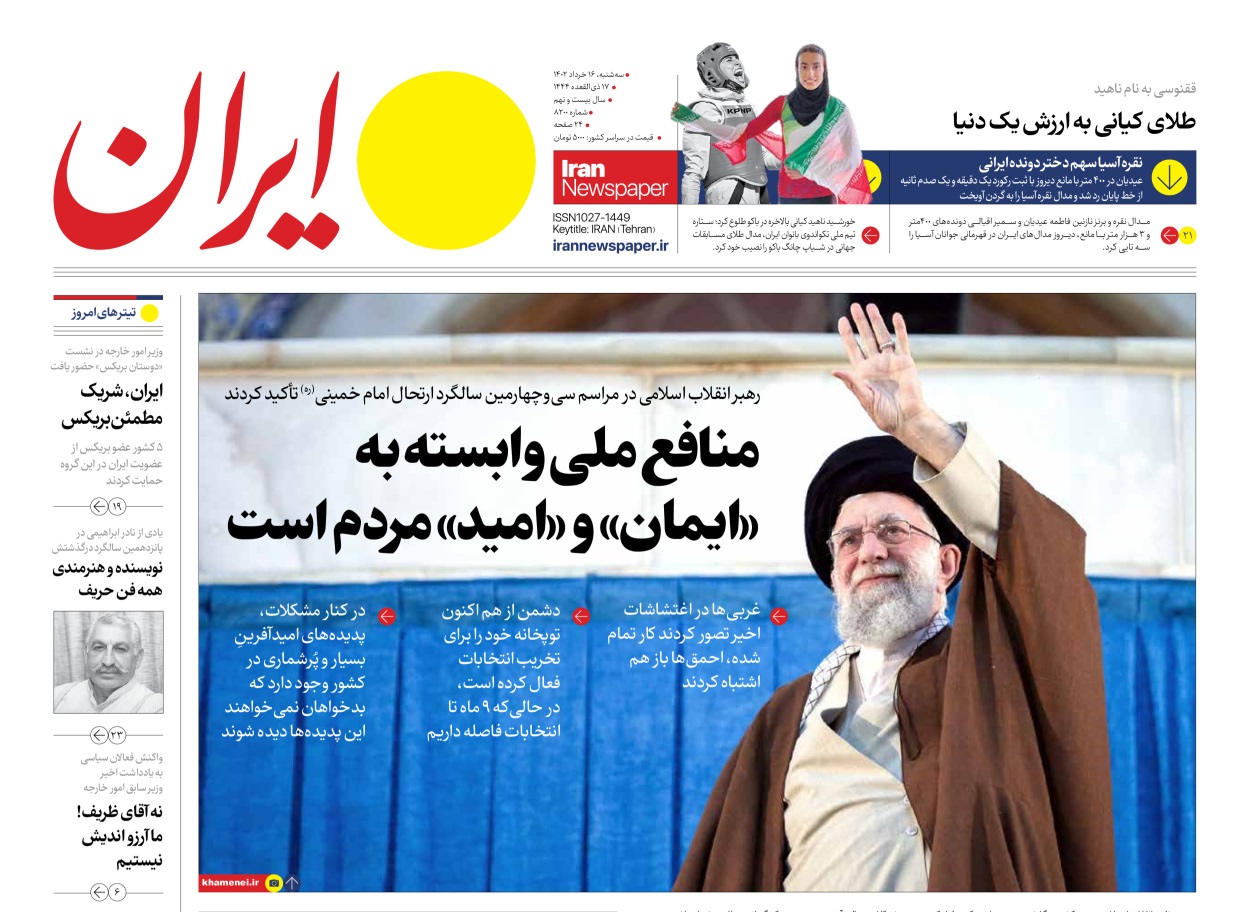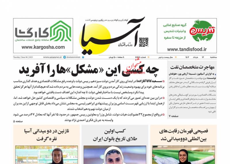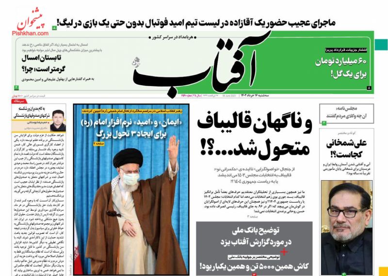 پایگاه خبری امید بانوان اخبار پیشخوان روزنامه صفحه اول روزنامههای 16 خرداد 1402 سهشنبه، 16 خرداد 1402 - 09:46 صفحه اول روزنامههای 16 خرداد 1402 صفحه اول روزنامههای سه شنبه شانزدهم خرداد 1402 را مشاهده میکنید. کدخبر: 13946 omidebanovan.ir/@13946