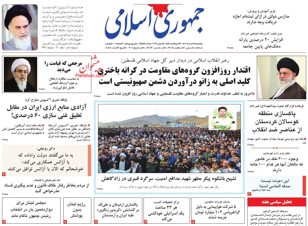 پایگاه خبری امید بانوان اخبار پیشخوان روزنامه صفحه اول روزنامههای 25 خرداد ۱۴۰۱ پنجشنبه، 25 خرداد 1402 - 10:34 صفحه اول روزنامههای 25 خرداد ۱۴۰۱ صفحه اول روزنامههای پنجشنبه بیست و پنجم خرداد 1402 را مشاهده میکنید. کدخبر: 14021 omidebanovan.ir/@14021