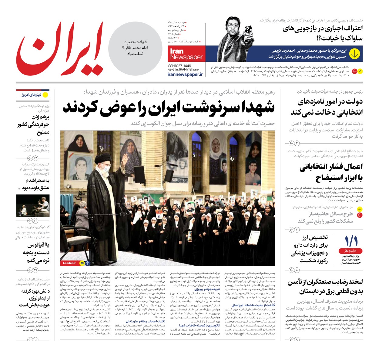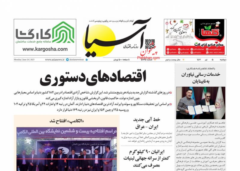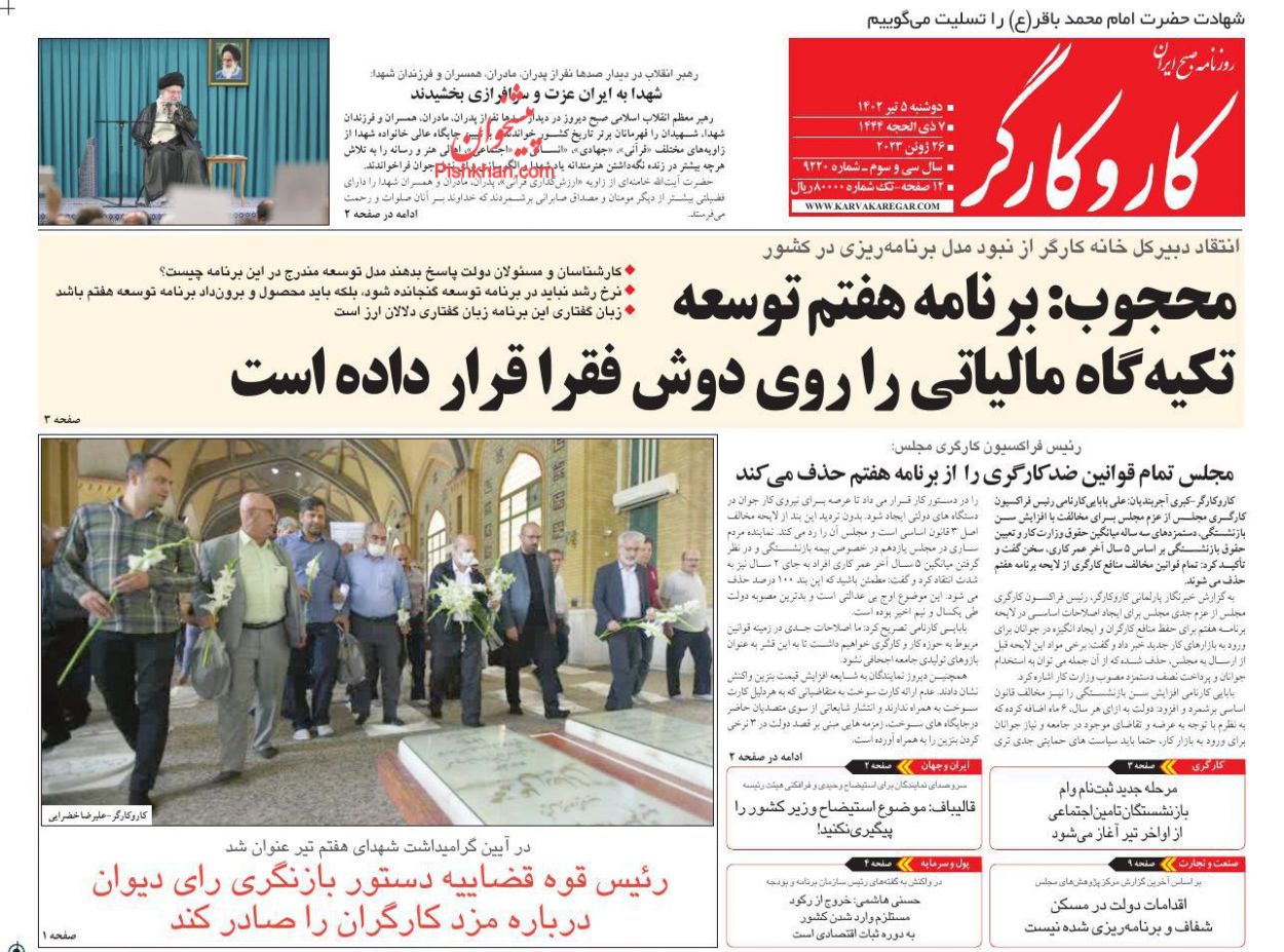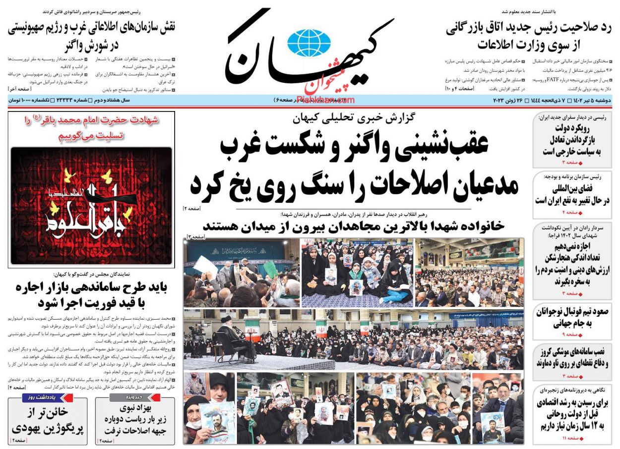 پایگاه خبری امید بانوان اخبار پیشخوان روزنامه صفحه اول روزنامههای 5 تیر 1402 دوشنبه، 05 تیر 1402 - 08:48 صفحه اول روزنامههای 5 تیر 1402 صفحه اول روزنامههای دوشنبه پنجم تیر 1402 را مشاهده میکنید. کدخبر: 14156 omidebanovan.ir/@14156