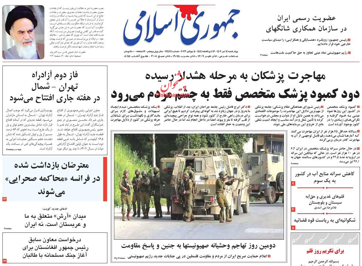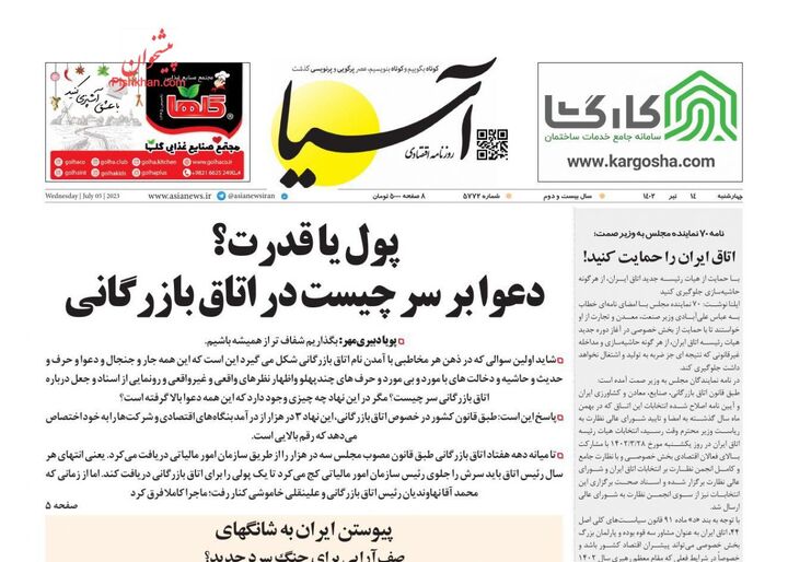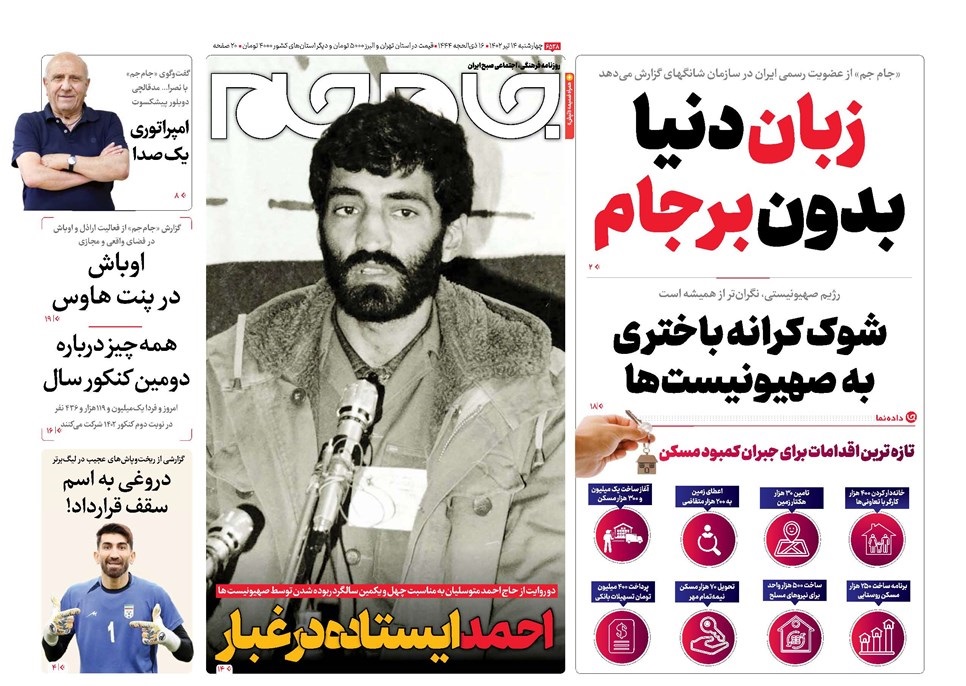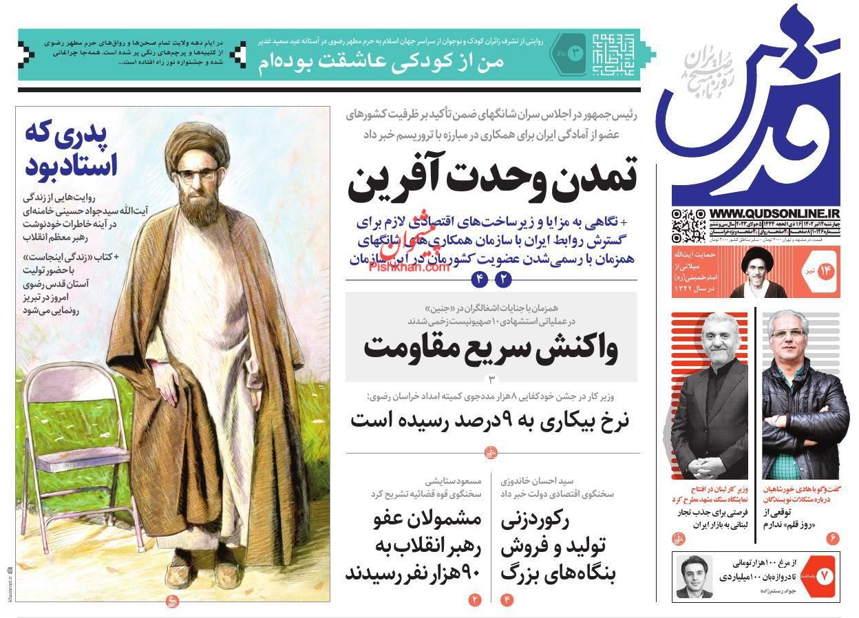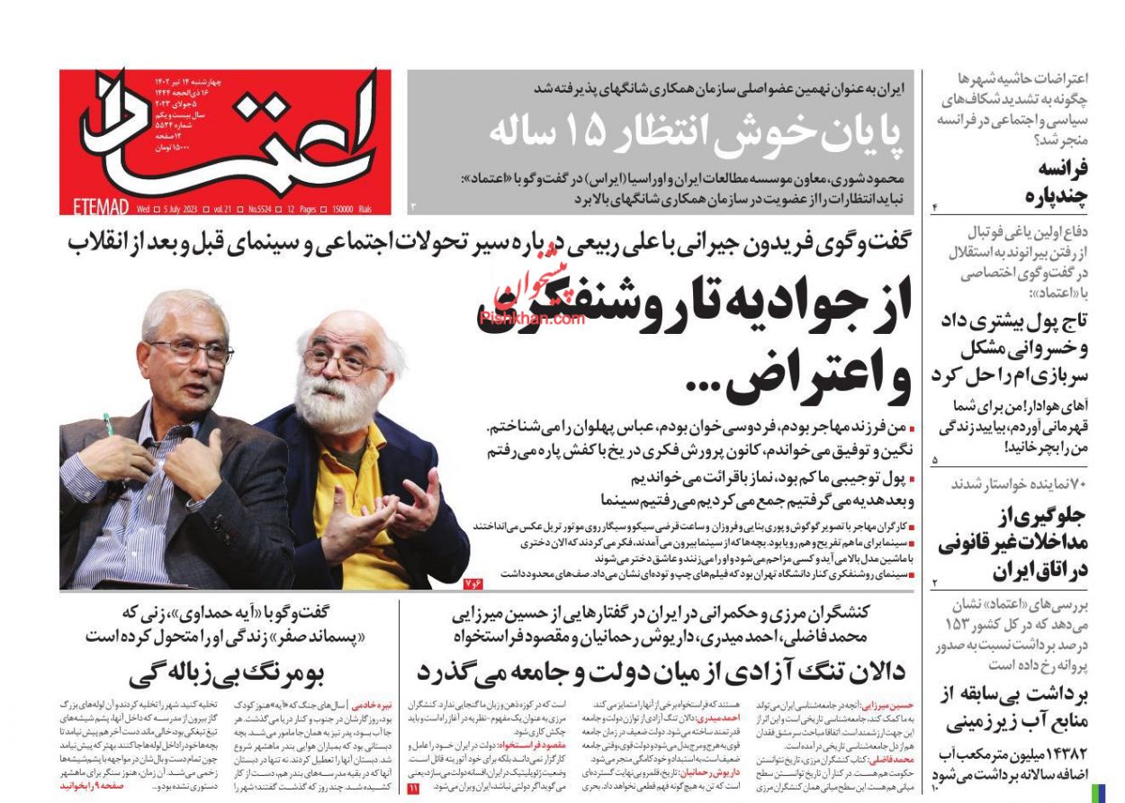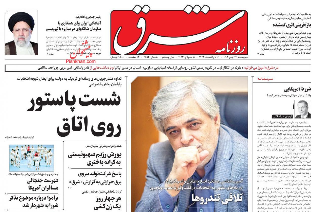 پایگاه خبری امید بانوان اخبار پیشخوان روزنامه صفحه اول روزنامههای 14 تیر 1402 چهارشنبه، 14 تیر 1402 - 09:48 صفحه اول روزنامههای 14 تیر 1402 صفحه اول روزنامههای چهارشنبه چهاردهم تیر 1402 را مشاهده میکنید. کدخبر: 14260 omidebanovan.ir/@14260