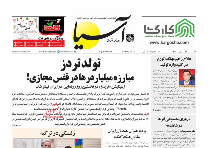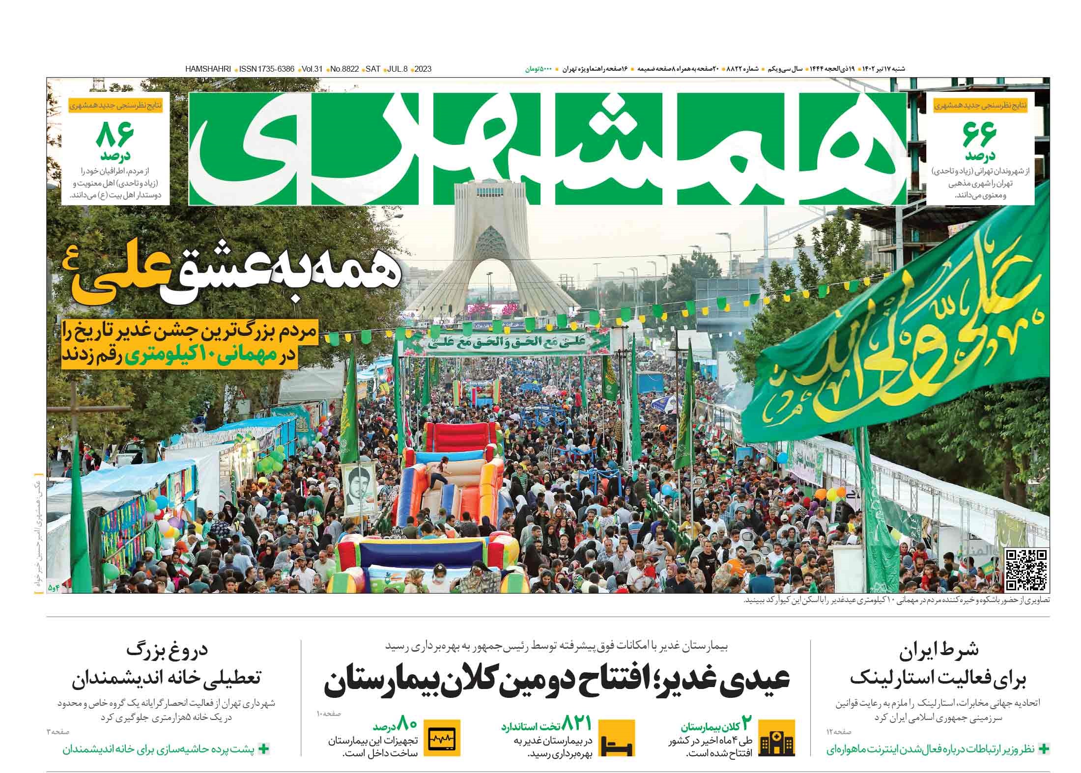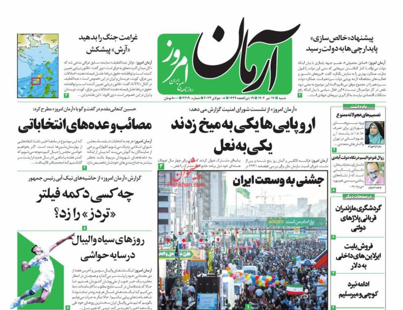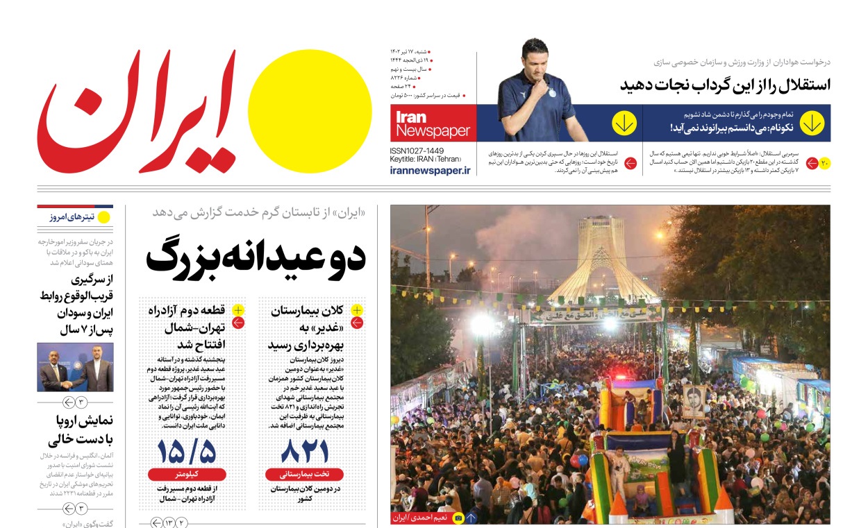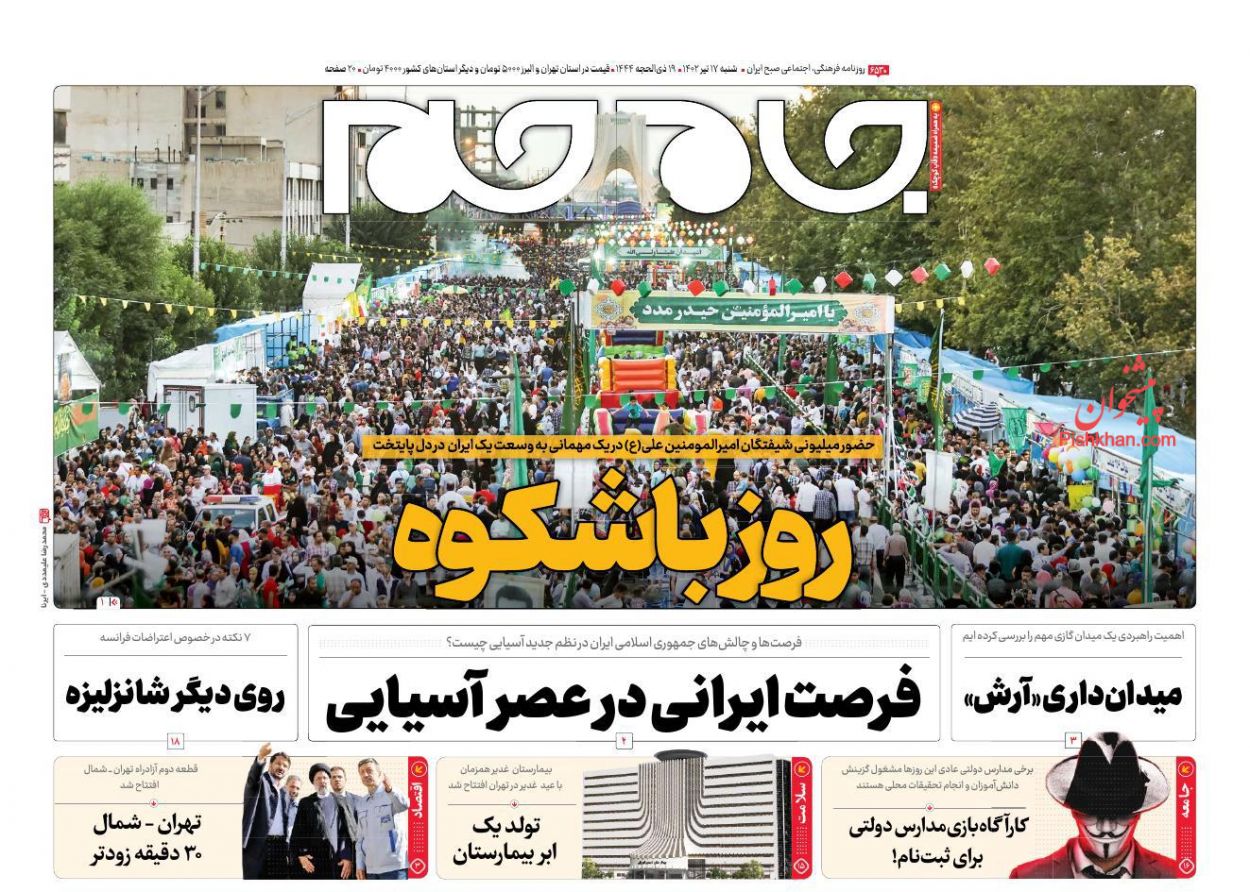 پایگاه خبری امید بانوان اخبار پیشخوان روزنامه صفحه اول روزنامههای 17 تیر 1402 شنبه، 17 تیر 1402 - 08:59 صفحه اول روزنامههای 17 تیر 1402 صفحه اول روزنامههای شنبه هفدهم تیر 1402 را مشاهده میکنید. کدخبر: 14267 omidebanovan.ir/@14267