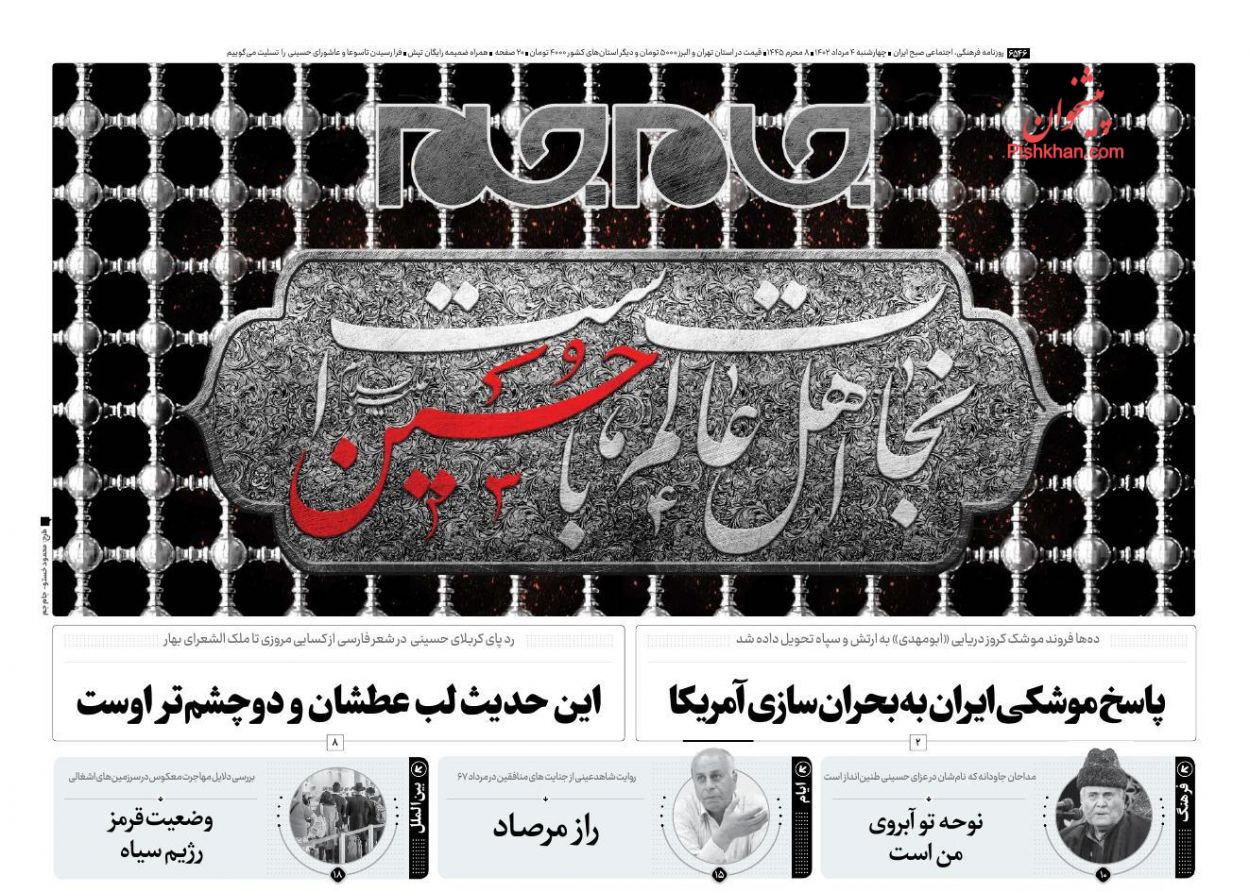 پایگاه خبری امید بانوان اخبار پیشخوان روزنامه صفحه اول روزنامههای 4 مرداد 1402 چهارشنبه، 04 مرداد 1402 - 12:16 صفحه اول روزنامههای 4 مرداد 1402 صفحه اول روزنامههای چهارشنبه چهارم مرداد 1402 را مشاهده میکنید. کدخبر: 14546 omidebanovan.ir/@14546