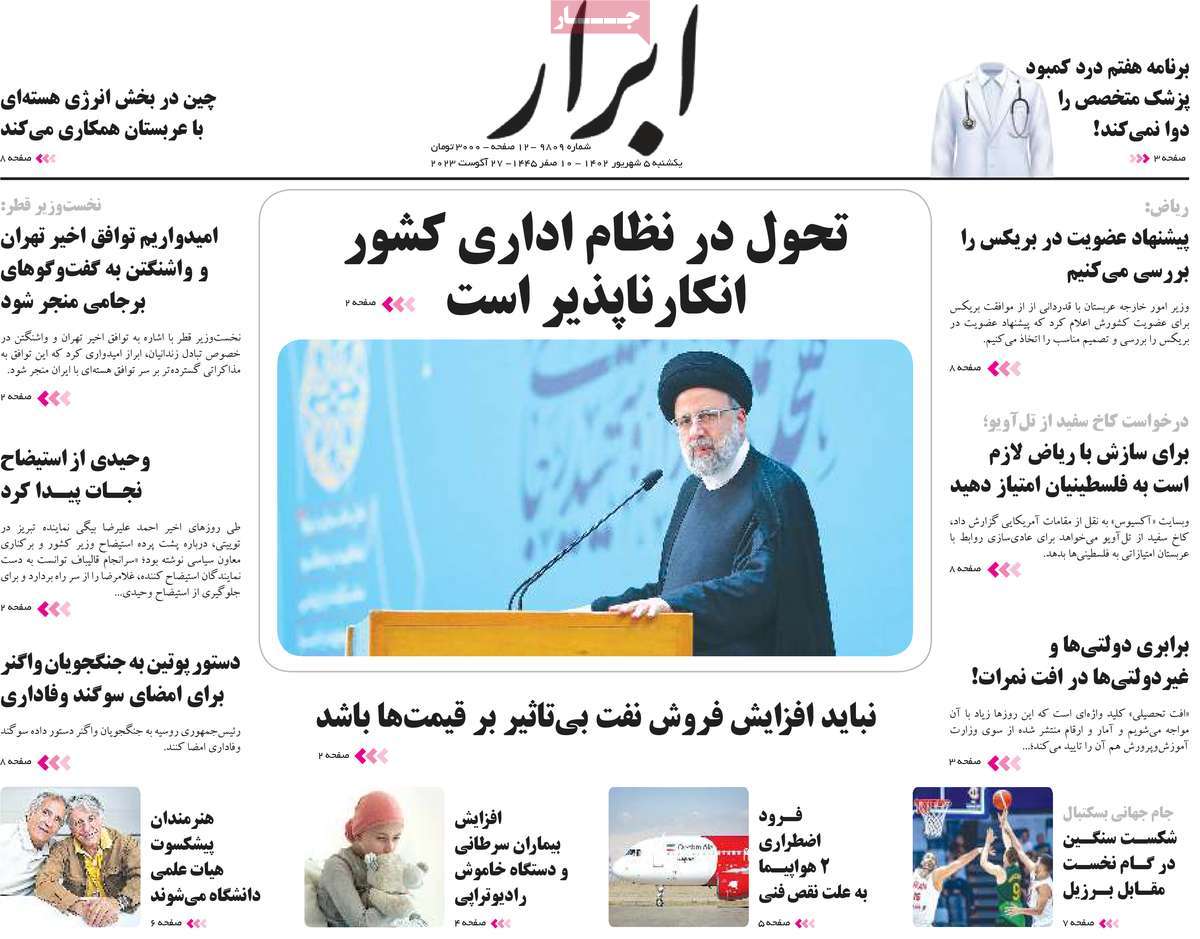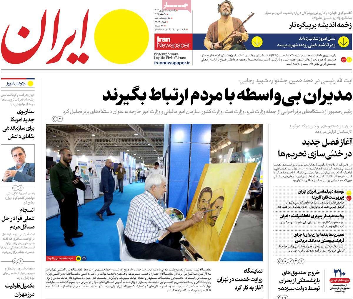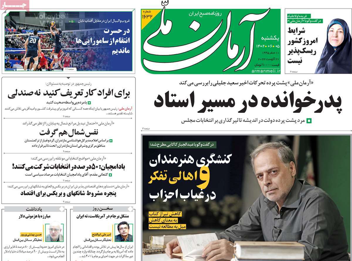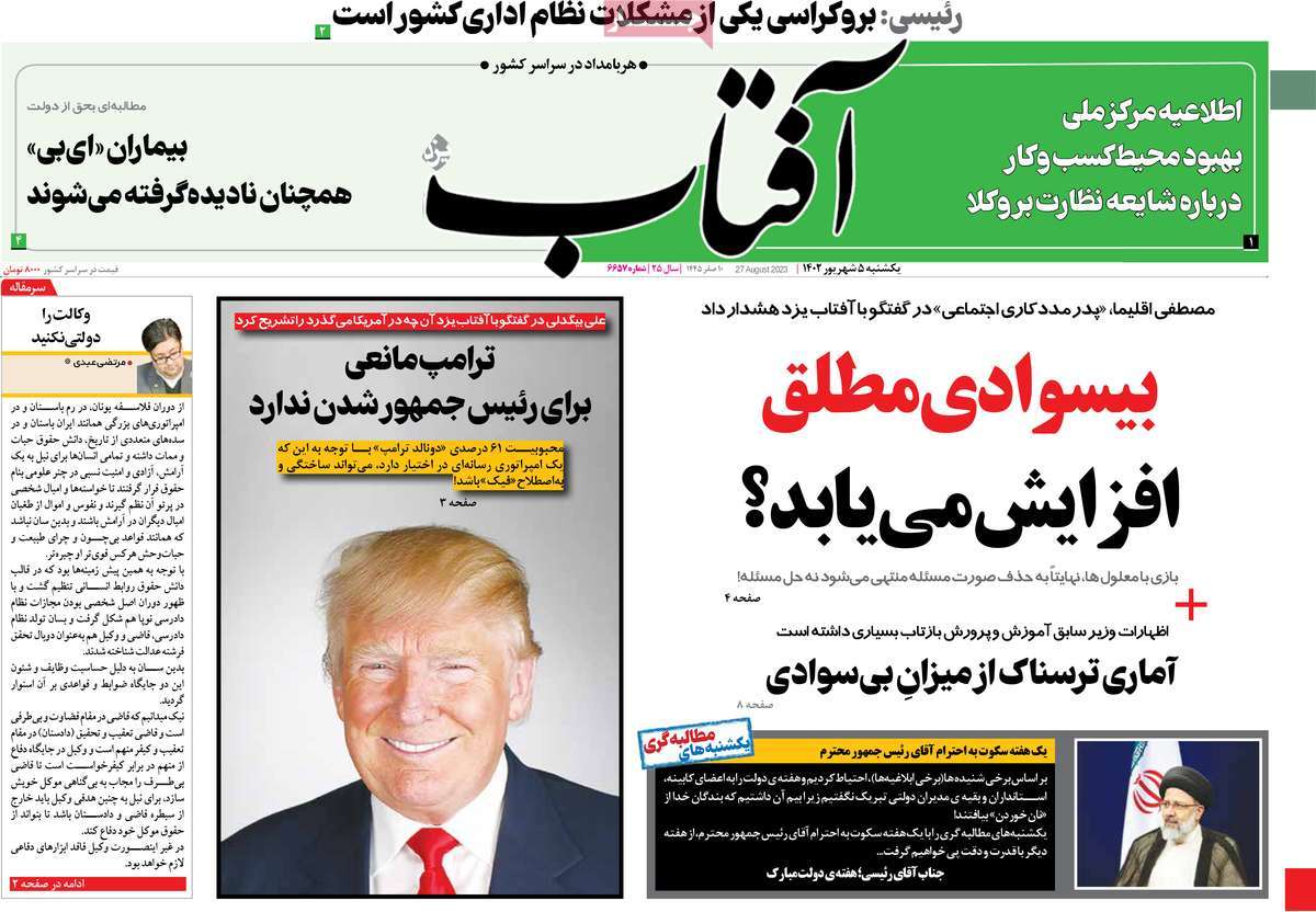 پایگاه خبری امید بانوان اخبار پیشخوان روزنامه صفحه اول روزنامههای 5شهریور 1402 یکشنبه، 05 شهریور 1402 - 07:01 صفحه اول روزنامههای 5شهریور 1402 صفحه اول روزنامههای یکشنبه پنجم شهریور 1402 را مشاهده میکنید. کدخبر: 14958 omidebanovan.ir/@14958