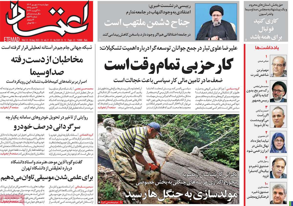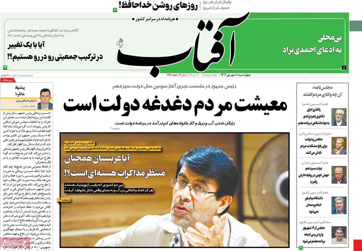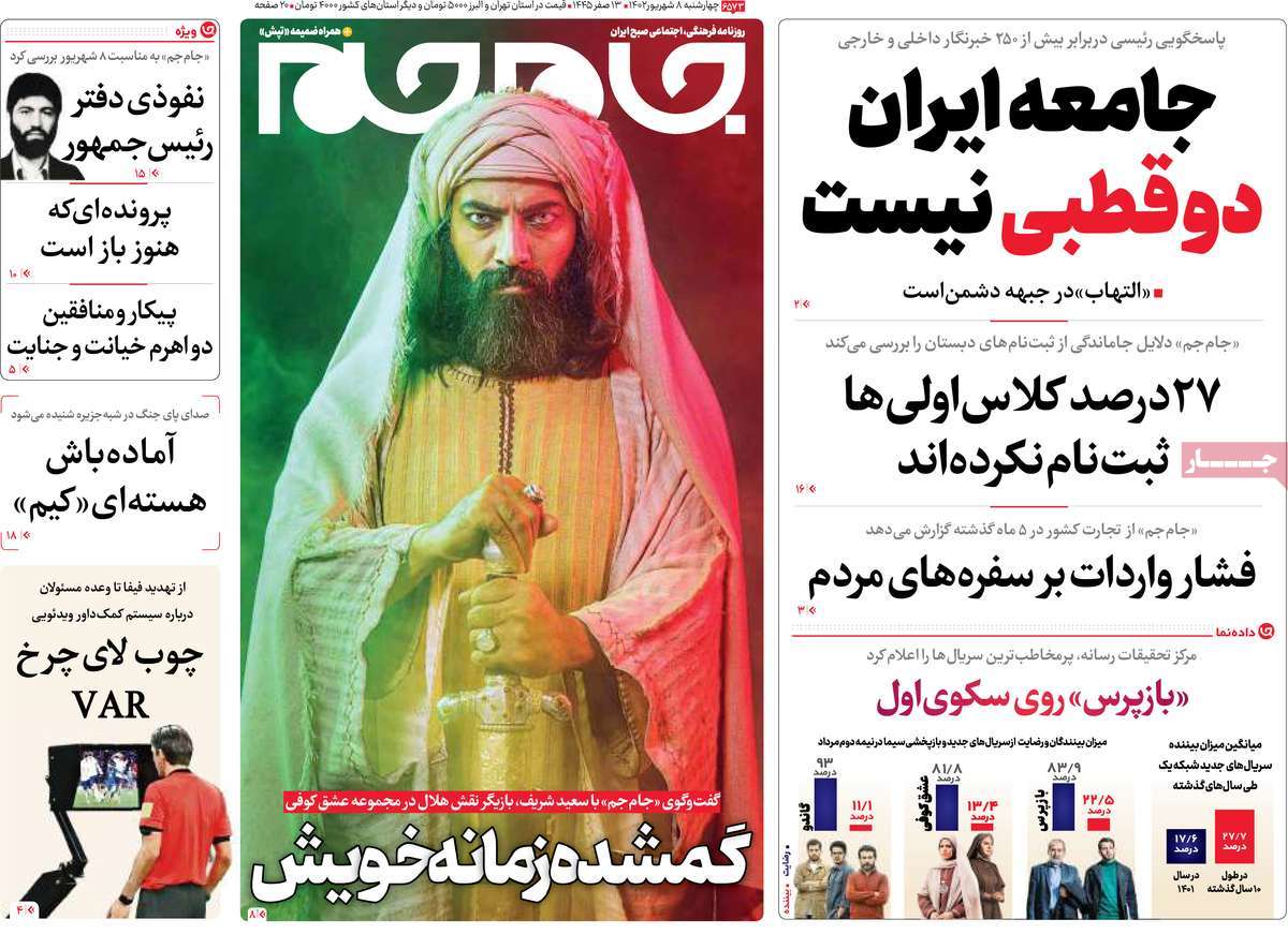 پایگاه خبری امید بانوان اخبار پیشخوان روزنامه صفحه اول روزنامههای 8 شهریور 1402 چهارشنبه، 08 شهریور 1402 - 10:33 صفحه اول روزنامههای 8 شهریور 1402 صفحه اول روزنامههای چهارشنبه هشتم شهریور 1402 را مشاهده میکنید. کدخبر: 15018 omidebanovan.ir/@15018