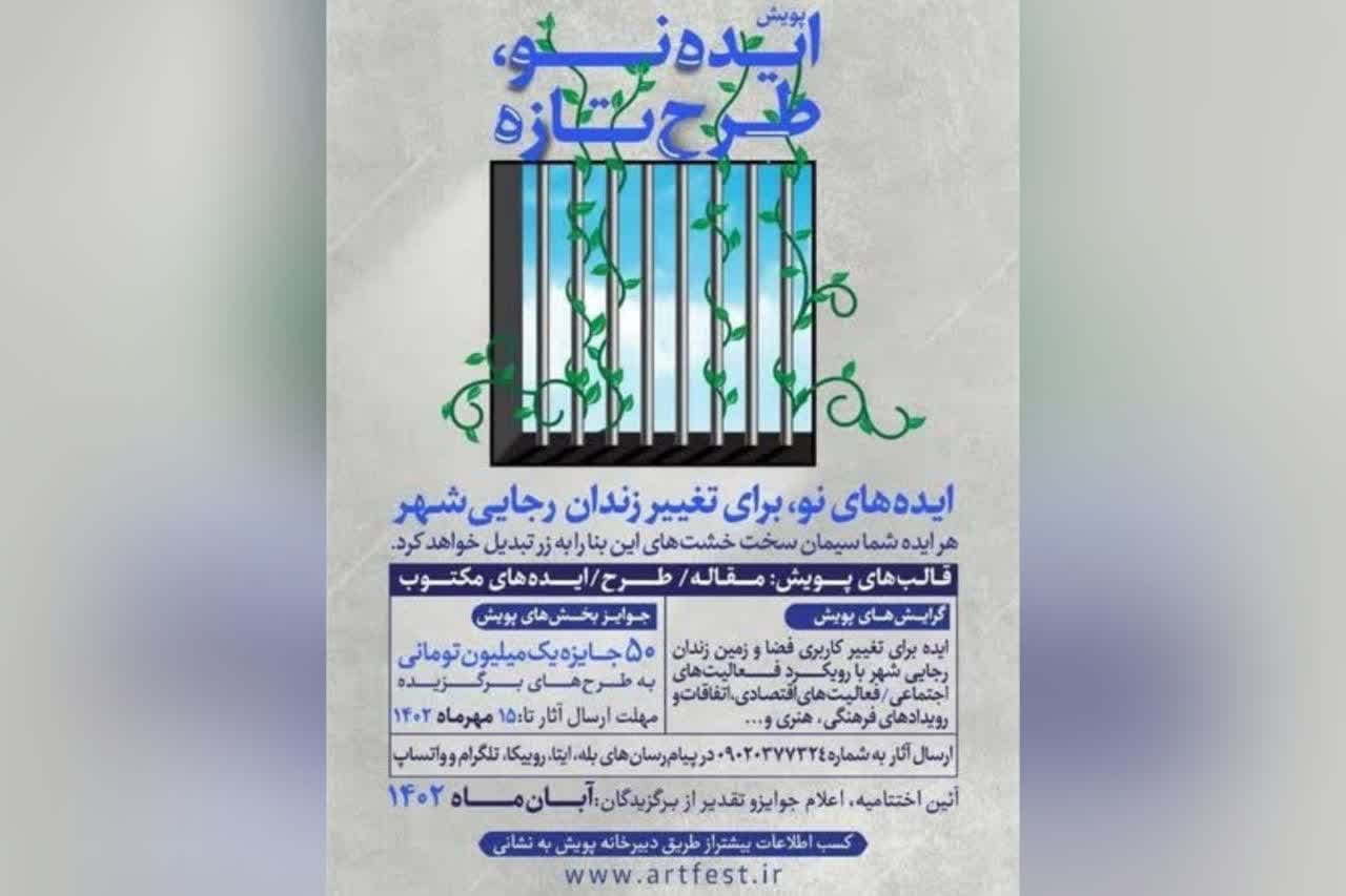 امیدبانوان؛ اداره کل فرهنگ و ارشاد اسلامی استان البرز فراخوان پویش «ایده نو، طرح تازه» را با هدف جذب ایدههای جدید برای تغییر فضای زندان رجایی شهر کرج منتشر کرد.
