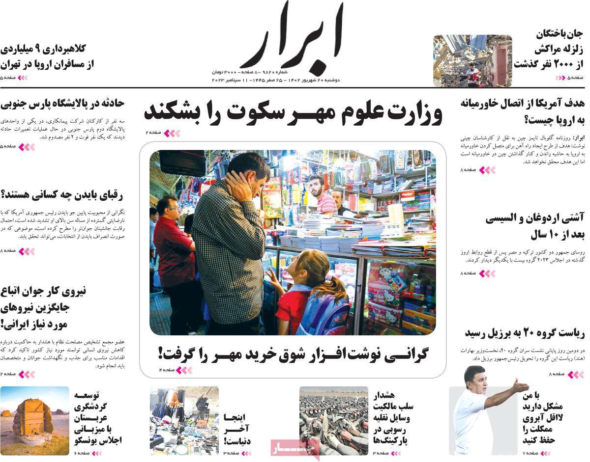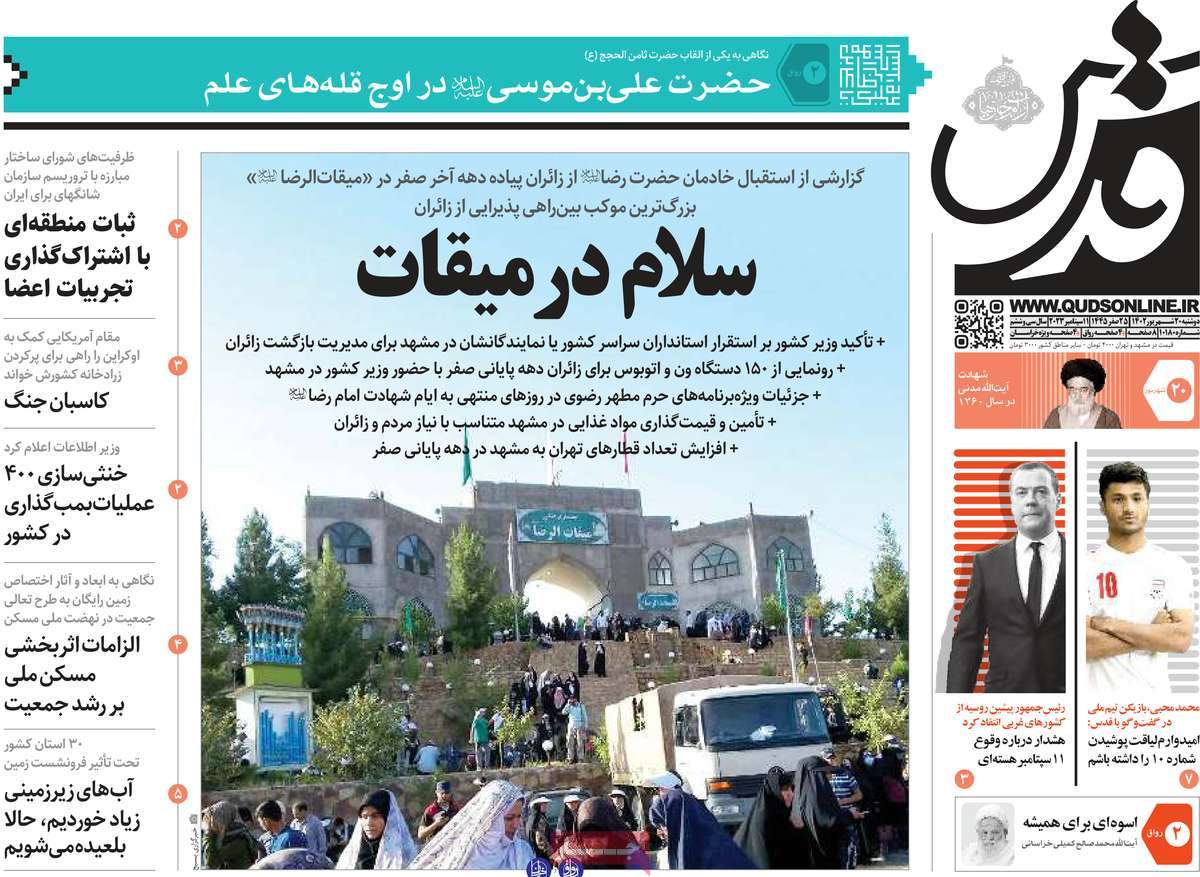 پایگاه خبری امید بانوان اخبار پیشخوان روزنامه صفحه اول روزنامههای 20 شهریور 1402 دوشنبه، 20 شهریور 1402 - 09:09 صفحه اول روزنامههای 20 شهریور 1402 صفحه اول روزنامههای دوشنبه بیستم شهریور 1402 را مشاهده میکنید. کدخبر: 15325 omidebanovan.ir/@15325