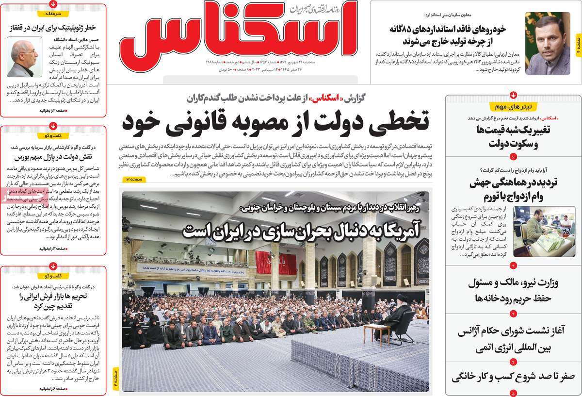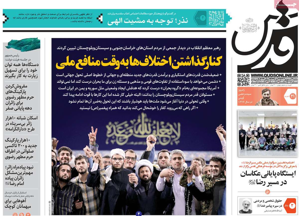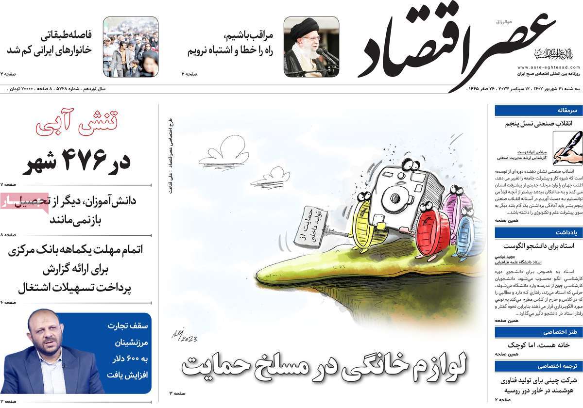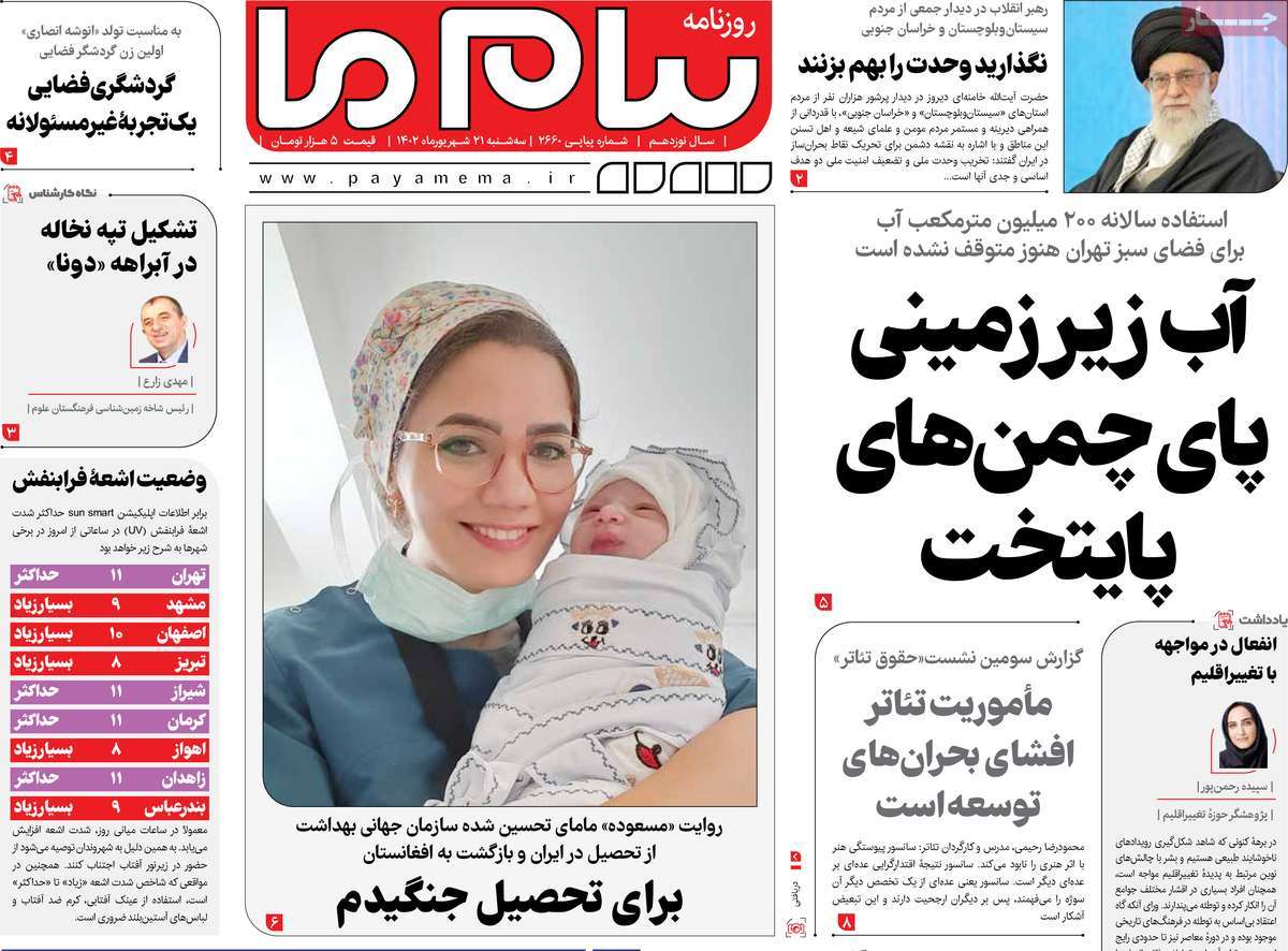 پایگاه خبری امید بانوان اخبار پیشخوان روزنامه صفحه اول روزنامههای 21 شهریور 1402 سهشنبه، 21 شهریور 1402 - 08:22 صفحه اول روزنامههای 21 شهریور 1402 صفحه اول روزنامههای سهشنبه بیست و یکم شهریور 1402 را مشاهده میکنید. کدخبر: 15349 omidebanovan.ir/@15349