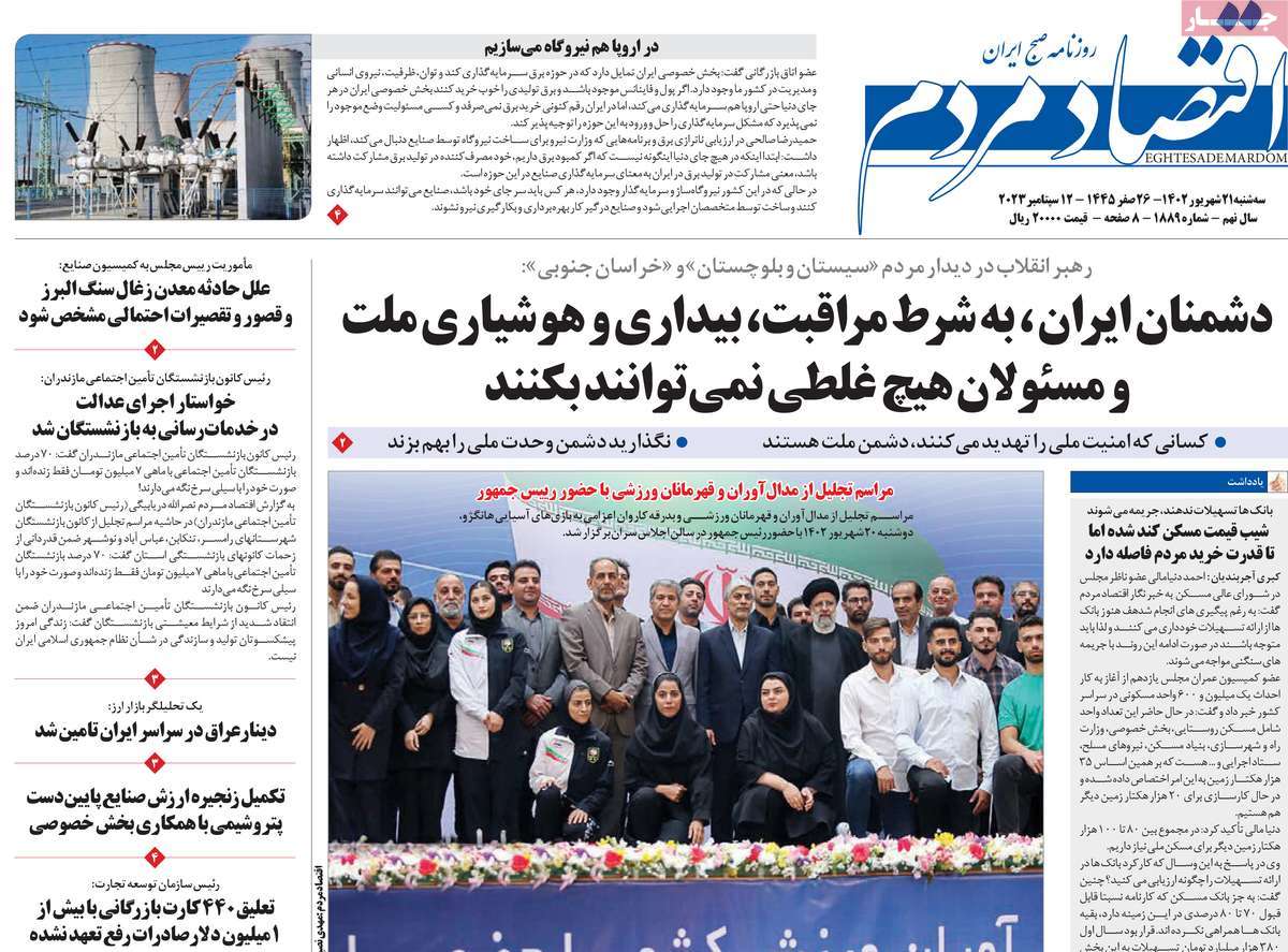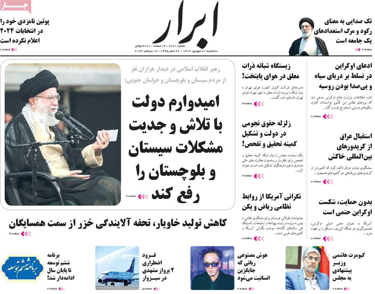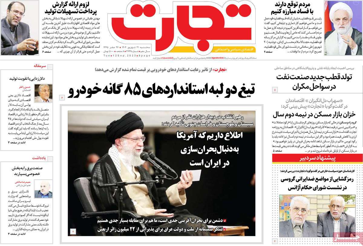 پایگاه خبری امید بانوان اخبار پیشخوان روزنامه صفحه اول روزنامههای 21 شهریور 1402 سهشنبه، 21 شهریور 1402 - 08:22 صفحه اول روزنامههای 21 شهریور 1402 صفحه اول روزنامههای سهشنبه بیست و یکم شهریور 1402 را مشاهده میکنید. کدخبر: 15349 omidebanovan.ir/@15349