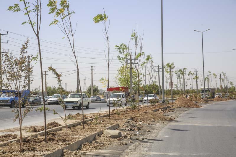 اجرای عملیات احداث فضای سبز در حاشیه جاده قزلحصار