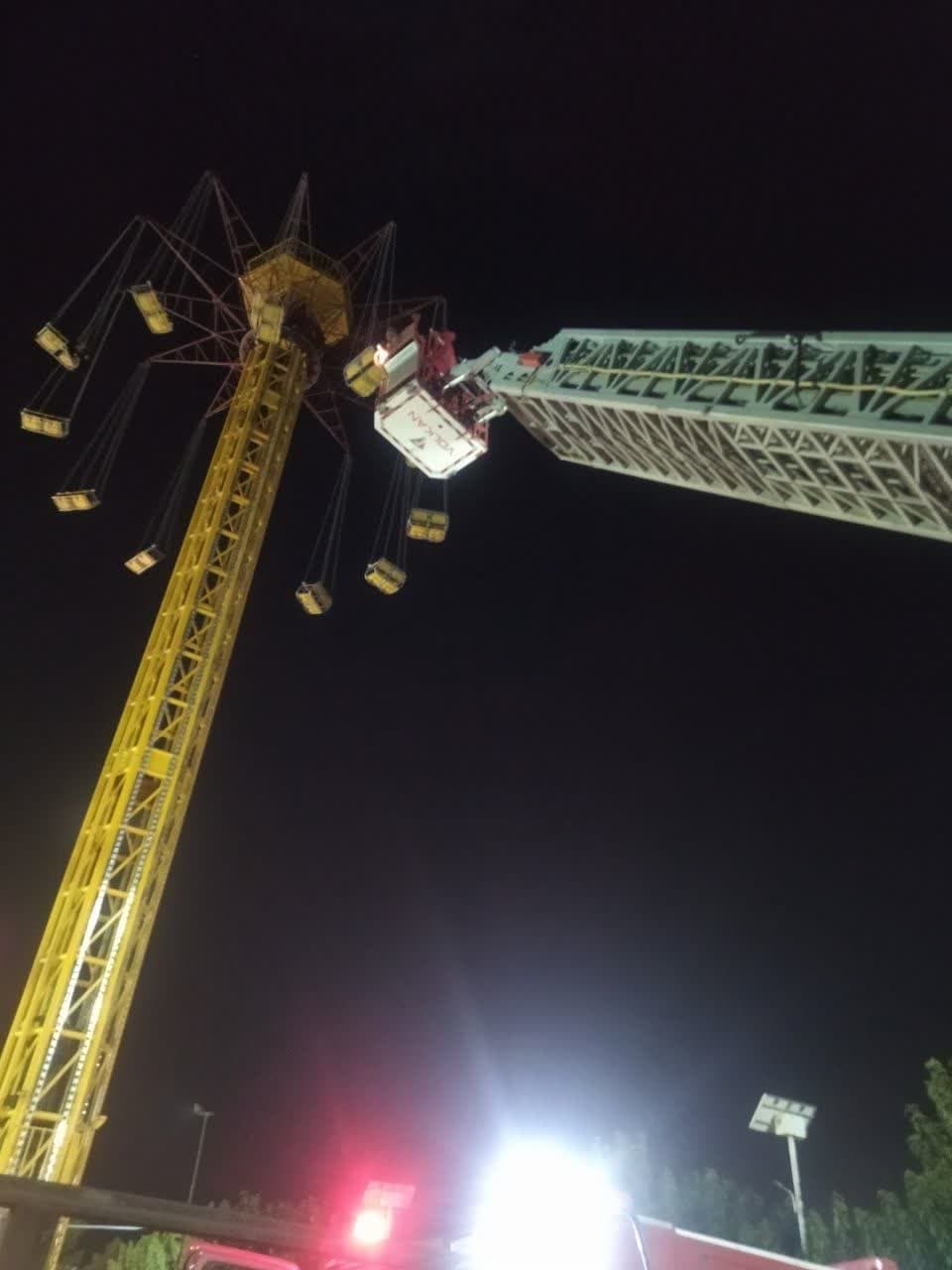 نژادفلاح محلی که تاب زنجیره ای در ارتفاع ۲۵ متری متوقف شده حضور یافت و در گفتگو