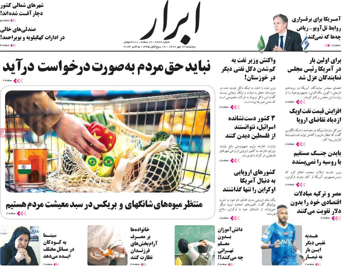 پایگاه خبری امید بانوان اخبار پیشخوان روزنامه صفحه اول روزنامههای 13 مهر 1402 پنجشنبه، 13 مهر 1402 - 10:07 صفحه اول روزنامههای 13 مهر 1402 صفحه اول روزنامههای پنجشنبه سیزدهم مهر1402 را مشاهده میکنید. کدخبر: 15896 omidebanovan.ir/@15896