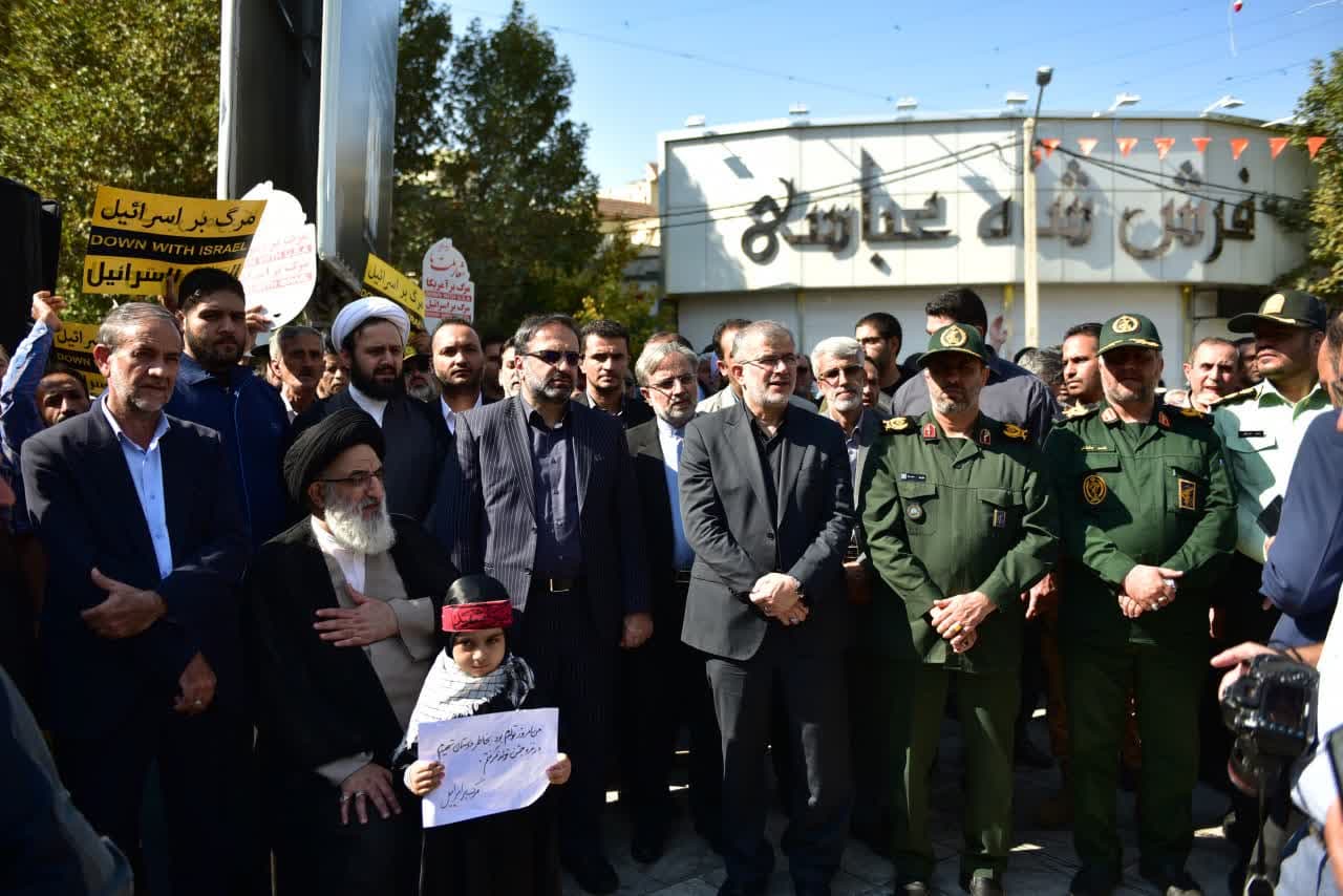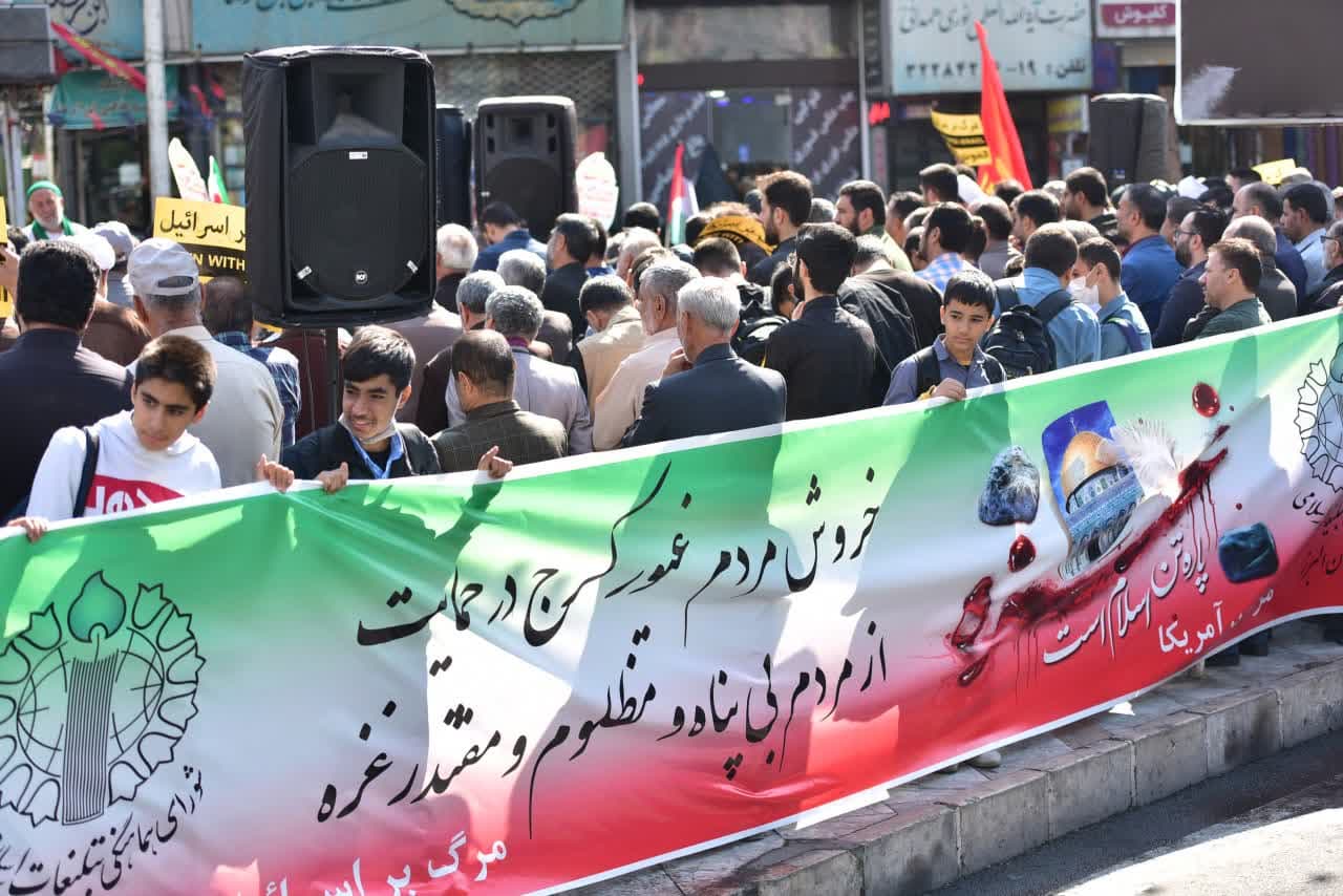 مردم و مسئولان کرج در محکومیت جنایات رژیم موقت و جعلی صهیونیستی در نسلکشی مردم مظلوم و کودکان بیدفاع فلسطین روز چهارشنبه ۲۶ مهرماه ۱۴۰۲ از مسیر میدان شهدا به سمت امامزاده حسن(ع) راهپیمایی کردند. .