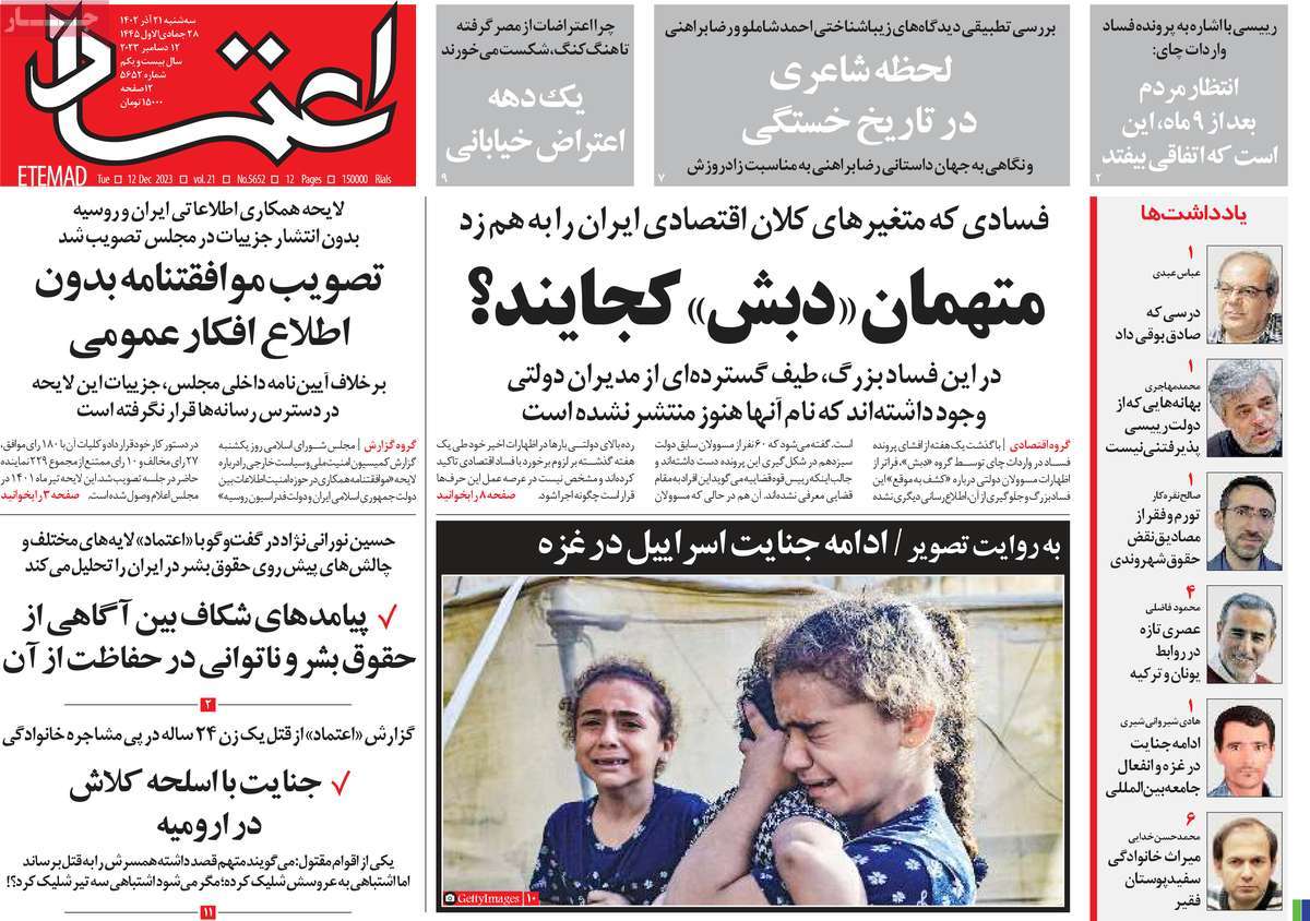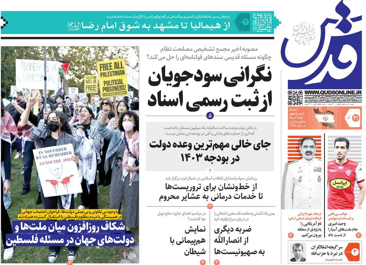 پایگاه خبری امید بانوان اخبار پیشخوان روزنامه صفحه اول روزنامههای 21 آذر1402 سهشنبه، 21 آذر 1402 - 08:51 صفحه اول روزنامههای 21 آذر1402 صفحه اول روزنامههای سهشنبه بیست و یکم آذر1402 را مشاهده میکنید. کدخبر: 16611 omidebanovan.ir/@16611