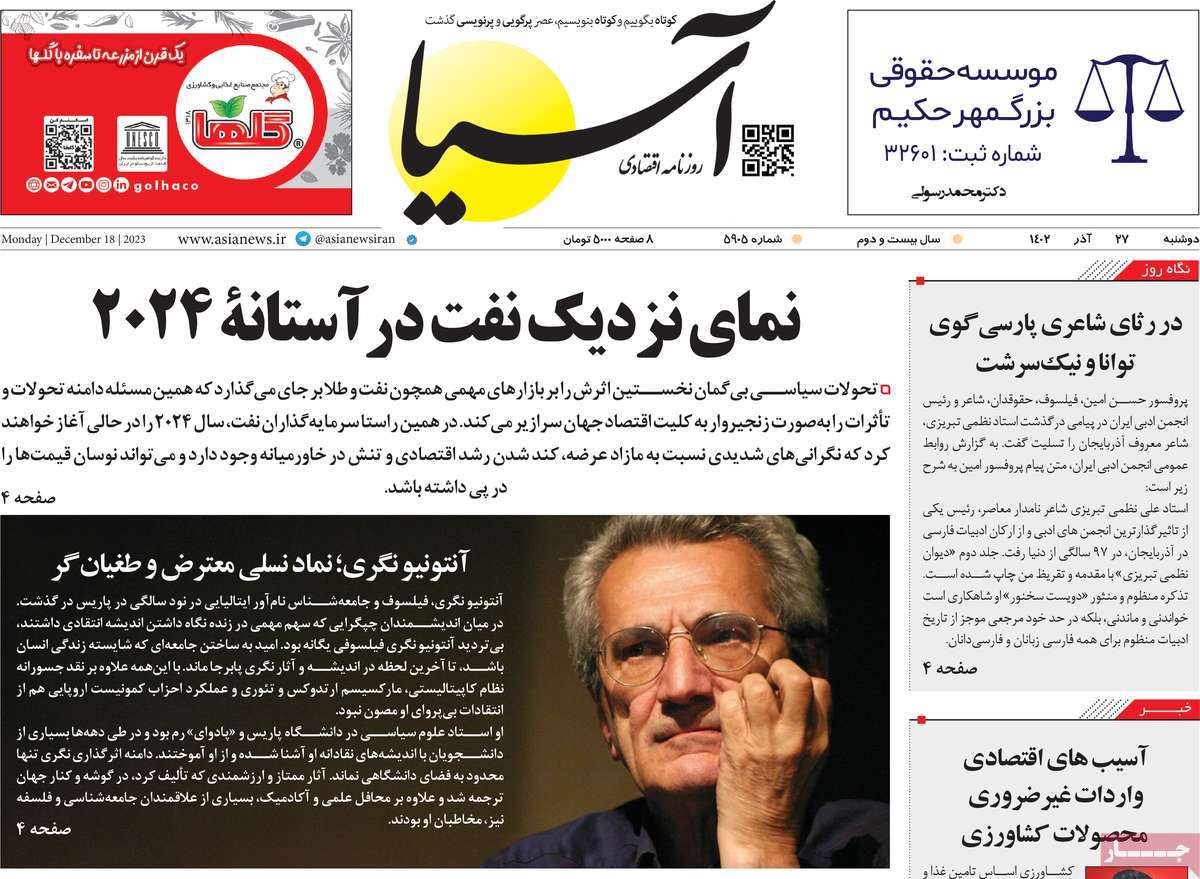 پایگاه خبری امید بانوان اخبار پیشخوان روزنامه صفحه اول روزنامههای 27 آذر1402 دوشنبه، 27 آذر 1402 - 08:57 صفحه اول روزنامههای 27 آذر1402 صفحه اول روزنامههای دوشنبه بیست و هفتم آذر1402 را مشاهده میکنید. کدخبر: 16681 omidebanovan.ir/@16681