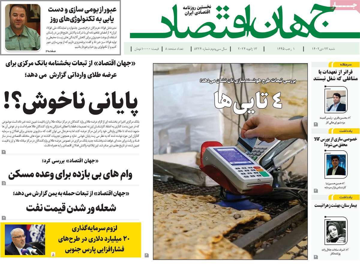 پایگاه خبری امید بانوان اخبار پیشخوان روزنامه صفحه اول روزنامههای 23 دی 1402 شنبه، 23 دی 1402 - 09:38 صفحه اول روزنامههای 23 دی 1402 صفحه اول روزنامههای شنبه بیست و سوم دیماه 1402 را مشاهده میکنید. کدخبر: 16875 omidebanovan.ir/@16875