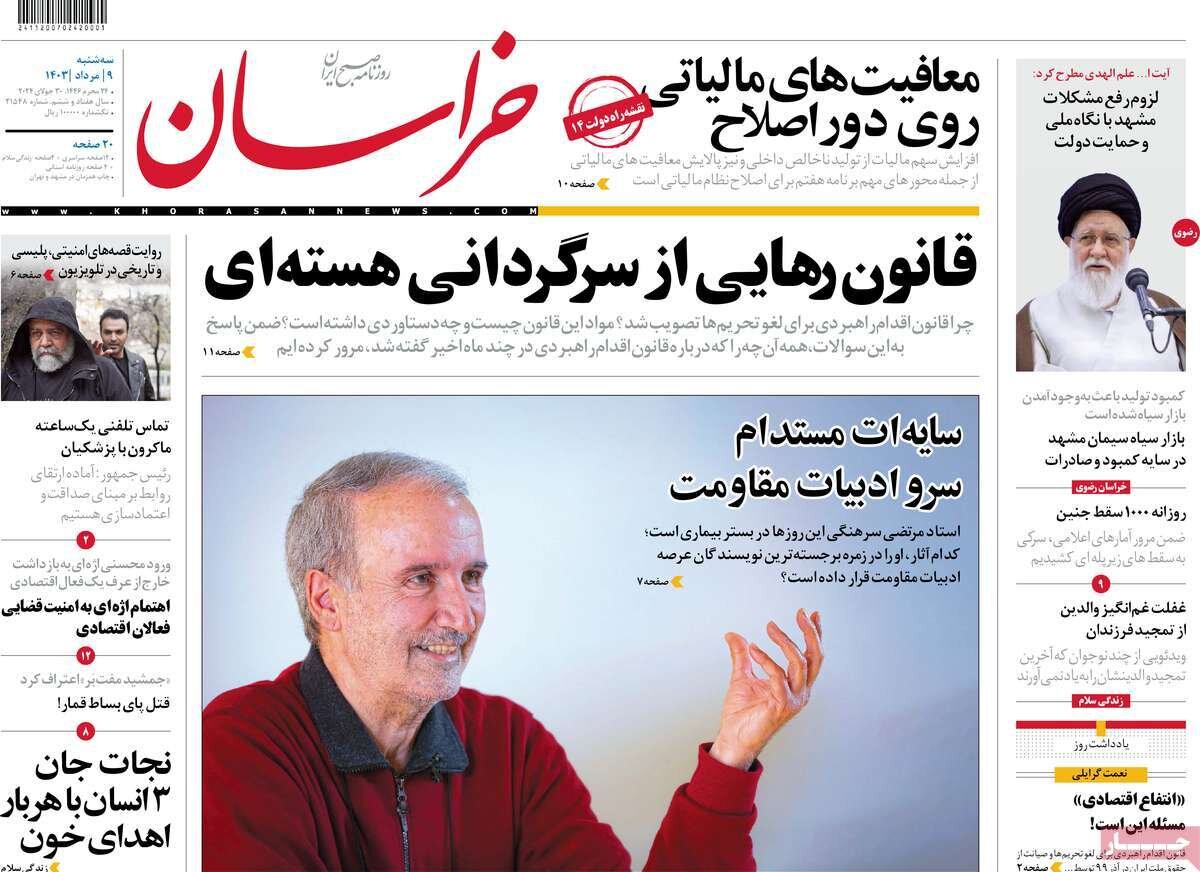 پایگاه خبری امید بانوان اخبار پیشخوان روزنامه صفحه اول روزنامههای 9 مرداد 1403 سهشنبه، 09 مرداد 1403 - 08:53 صفحه اول روزنامههای 9 مرداد 1403 صفحه اول روزنامههای سه شنبه نهم مرداد 1403 را مشاهده میکنید. کدخبر: 18410 omidebanovan.ir/@18410