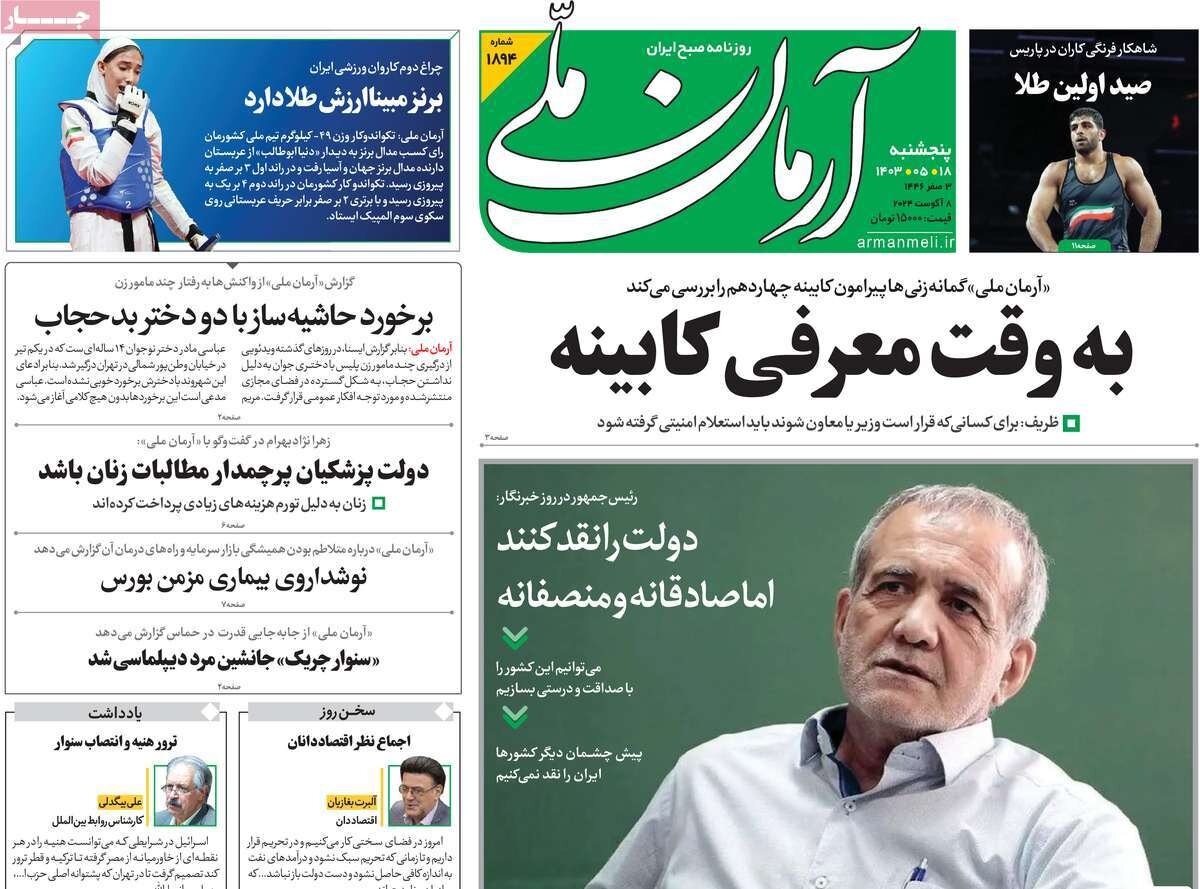 پایگاه خبری امید بانوان اخبار صفحه اول روزنامههای 18 مرداد 1403 پنجشنبه، 18 مرداد 1403 - 11:40 صفحه اول روزنامههای 18 مرداد 1403 صفحه اول روزنامههای پنجشنبه هجدهم مرداد 1403 را مشاهده میکنید. کدخبر: 18539 omidebanovan.ir/@18539
