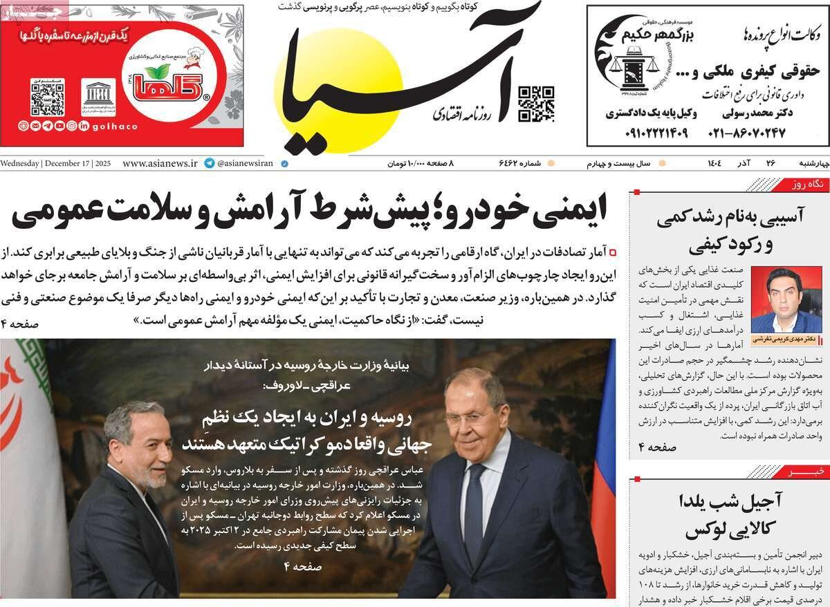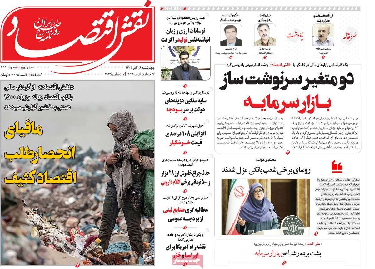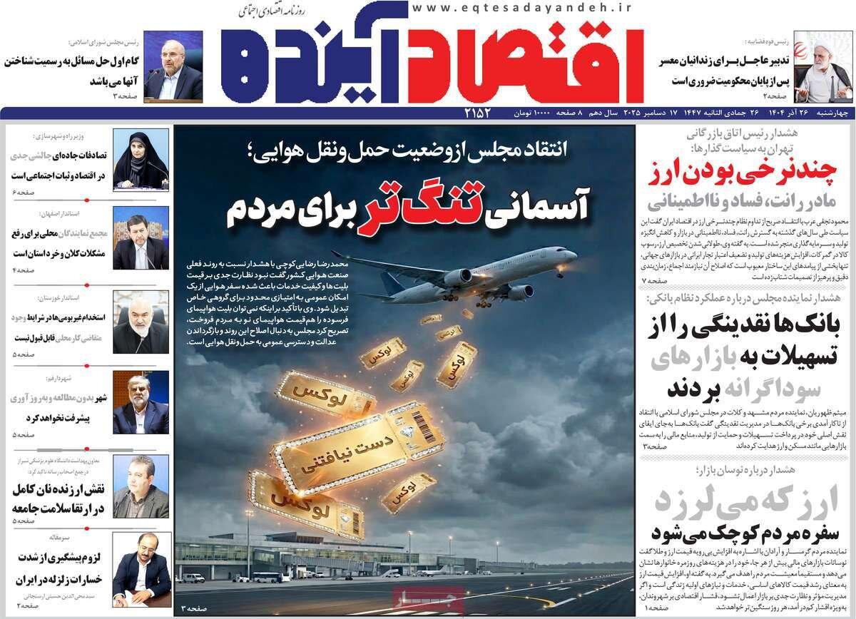 پایگاه خبری امید بانوان اخبار پیشخوان روزنامه صفحه اول روزنامههای 26 آذر 1404 چهارشنبه، 26 آذر 1404 - 10:18 صفحه اول روزنامههای 26 آذر 1404 صفحه اول روزنامههای چهارشنبه بیست و ششم آذر 1404 را مشاهده میکنید. کدخبر: 20593 omidebanovan.ir/@20593
