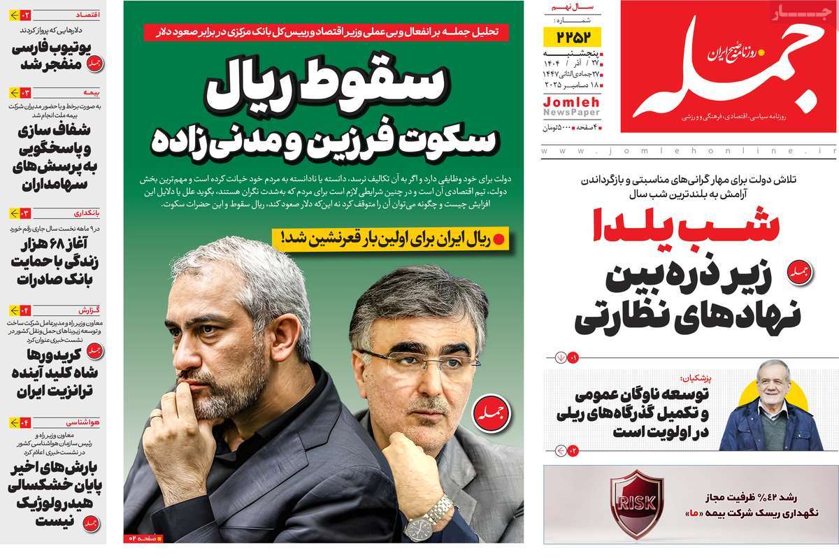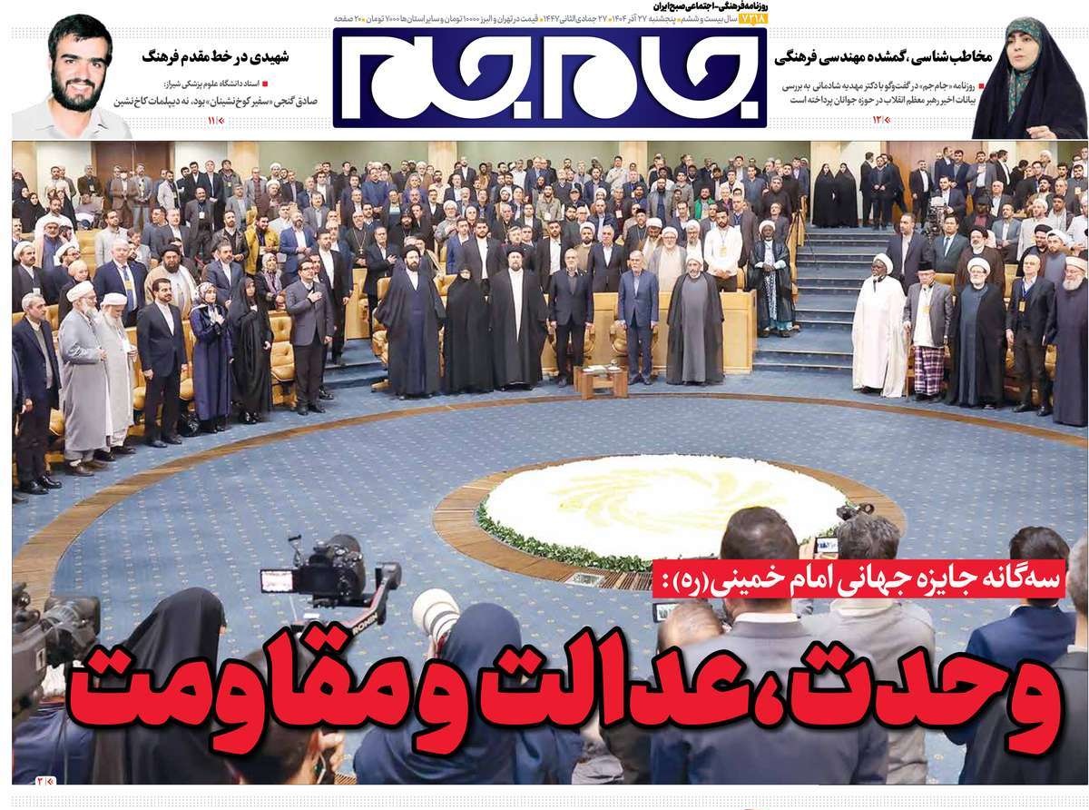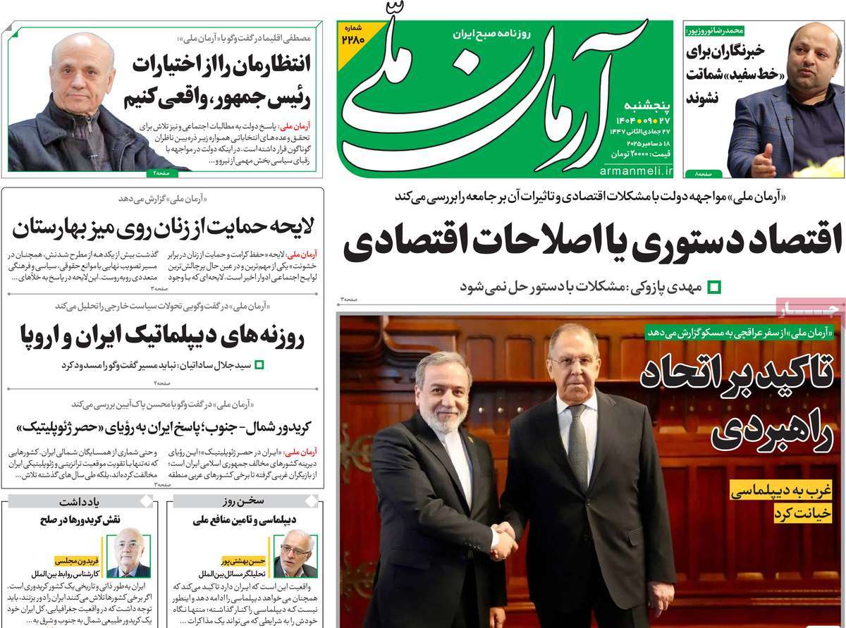 پایگاه خبری امید بانوان اخبار پیشخوان روزنامه صفحه اول روزنامههای 27 آذر 1404 پنجشنبه، 27 آذر 1404 - 09:29 صفحه اول روزنامههای 27 آذر 1404 صفحه اول روزنامههای پنجشنبه بیست و هفتم آذر 1404 را مشاهده میکنید. کدخبر: 20614 omidebanovan.ir/@20614