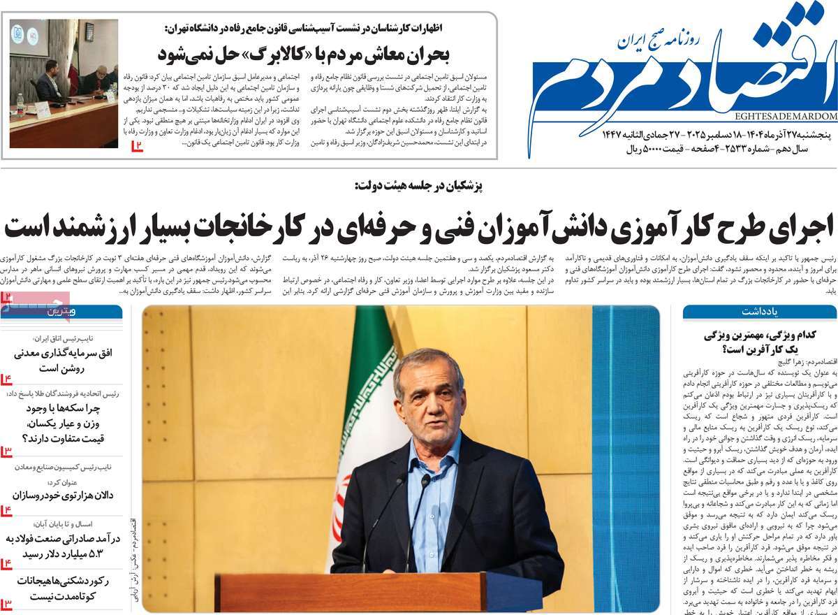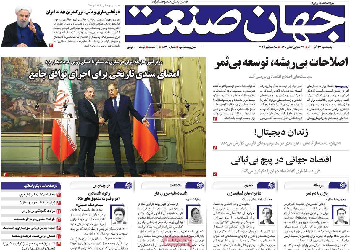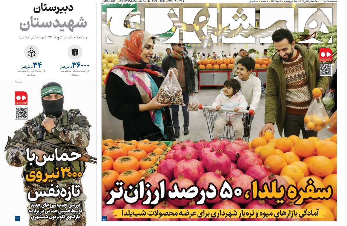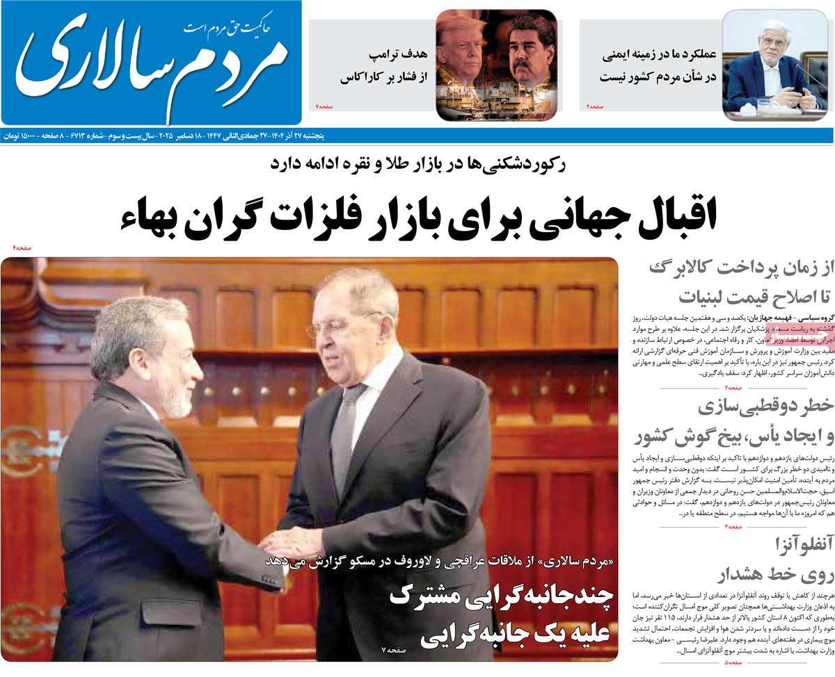 پایگاه خبری امید بانوان اخبار پیشخوان روزنامه صفحه اول روزنامههای 27 آذر 1404 پنجشنبه، 27 آذر 1404 - 09:29 صفحه اول روزنامههای 27 آذر 1404 صفحه اول روزنامههای پنجشنبه بیست و هفتم آذر 1404 را مشاهده میکنید. کدخبر: 20614 omidebanovan.ir/@20614