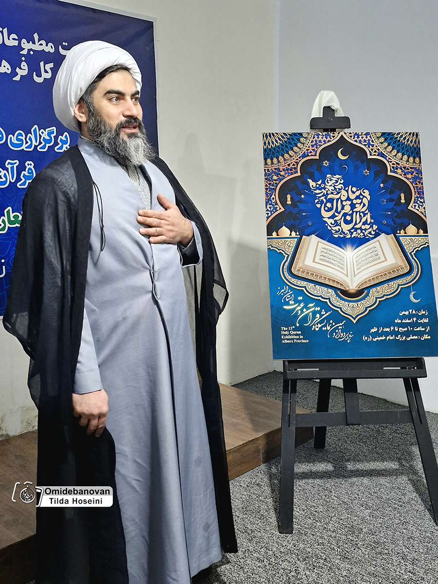 در نشست خبری مدیرکل فرهنگ و ارشاد اسلامی استان البرز، پوستر دوازدهمین نمایشگاه قرآن و عترت با حضور اصحاب رسانه و فعالان فرهنگی رونمایی شد. این نمایشگاه با شعار همافزایی دستگاههای فرهنگی و تمرکز بر برنامههای کودک و نوجوان از ۲۸ بهمنماه تا ۴ اسفندماه، همهروزه از ساعت ۱۰ صبح تا 12 و 14 تا اذان مغرب و عشاء در مصلای کرج برگزار میشود .