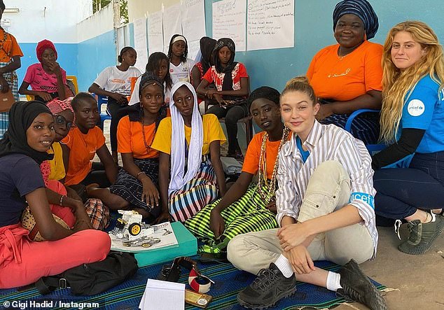 جیجیحدید با اندکی دور شدن از دنیای مد و لباس، به عنوان سفیر یونیسف از تسهیلات و امکانات مرتبط با زنان و کودکان در آفریقا دیدن کرد.