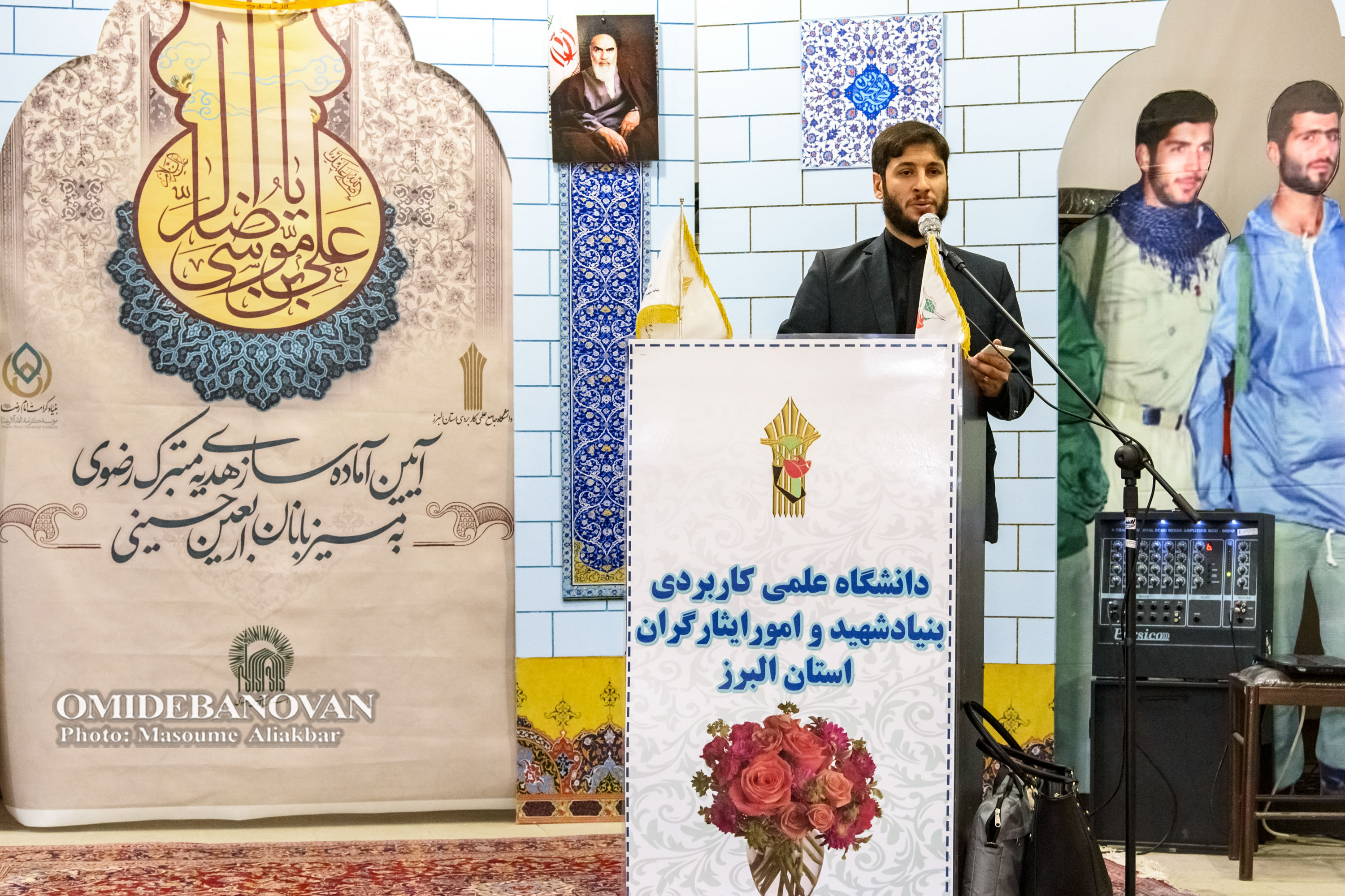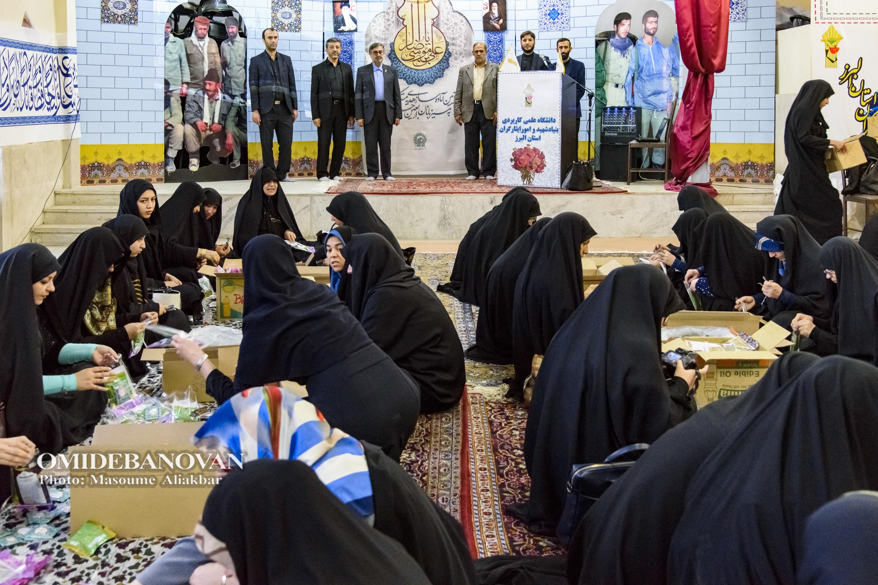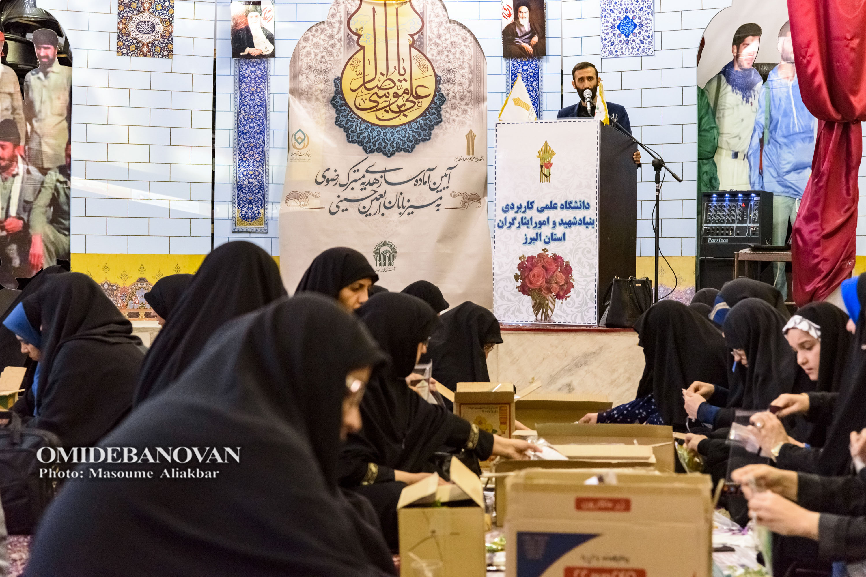 آئین آمادهسازی هدایای متبرک رضوی برای اهدا به میزبانان اربعین حسینی با حضور جمعی از بانوان استان البرز، مدیرکل امور بانوان و خانواده استانداری البرز و مسئولان عالی رتبه دانشگاه جامع علمی کاربردی البرز در مرکز آموزش علمی کاربردی بنیاد شهید برگزار شد..