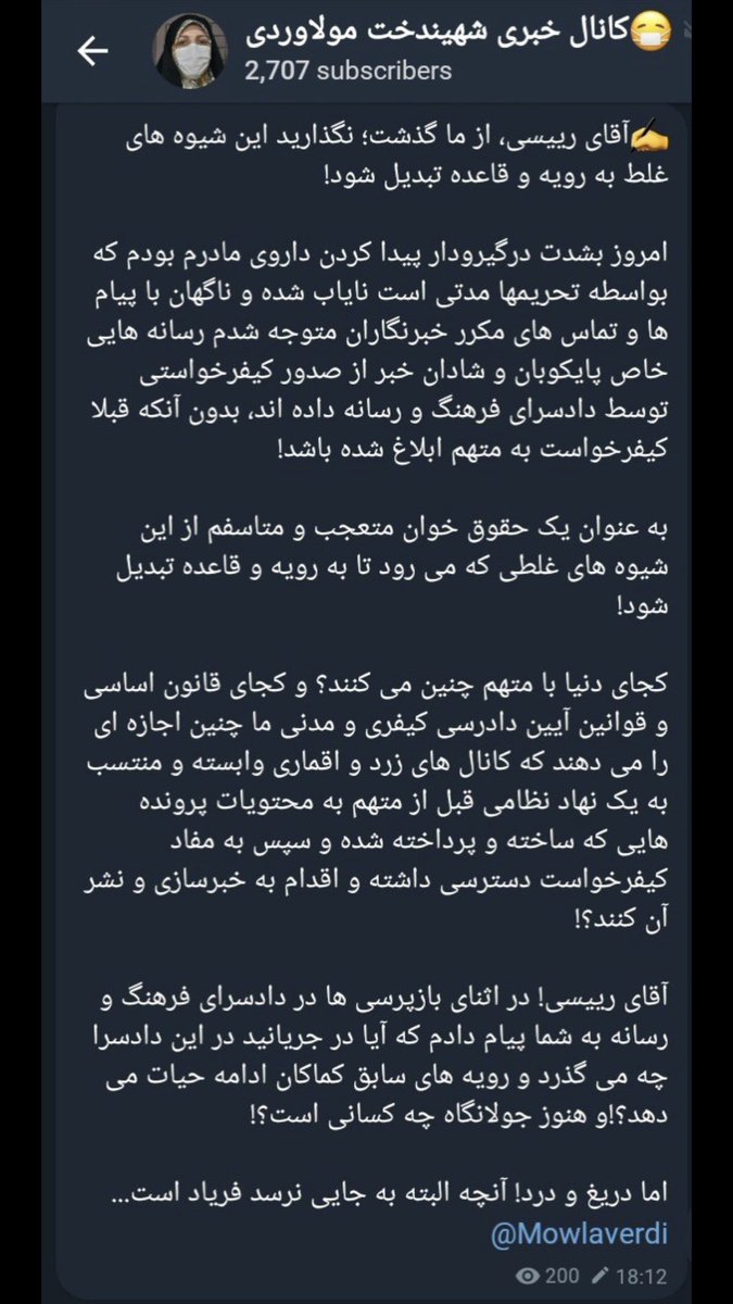 شهیندخت مولاوردی درخصوص این خبر گفت: چرا قبل از اینکه کیفرخواست به متهم ابلاغ شود برخلاف آیین دادرسی در رسانه خاص دست به دست می شود؟!