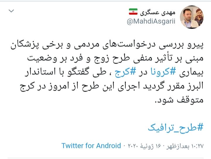 گفتنی است پیگیری «مهدی عسگری» نماینده منتخب مردم کرج، فردیس، اشتهارد و آسارا در خانه ملت نیز در لغو اجرای این طرح نقش ارزندهای داشت.