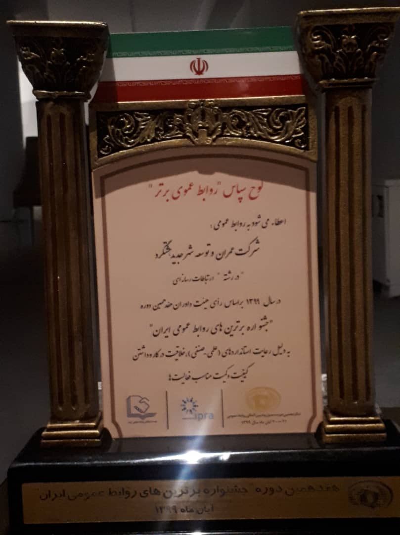 کسب نشان روابط عمومی برتر کشور توسط شرکت عمران شهر جدید هشتگرد