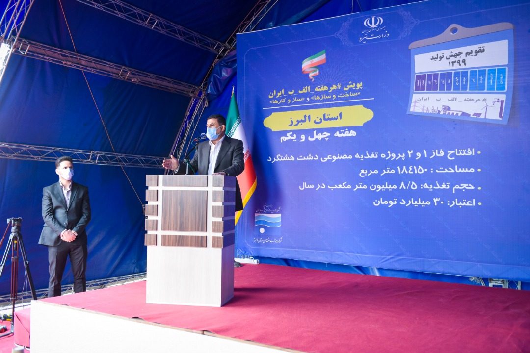 مراسم بهرهبرداری از افتتاح فاز یک و دو پروژه تغذیه مصنوعی دشت هشتگرد روز سهشنبه در ساوجبلاغ با حضور وزیر نیرو به صورت ویدئو کنفرانس برگزار شد.