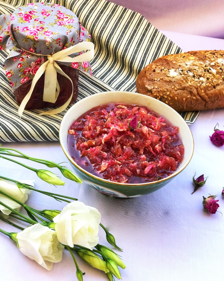 مربای گل محمدی با گلبرگ تازه