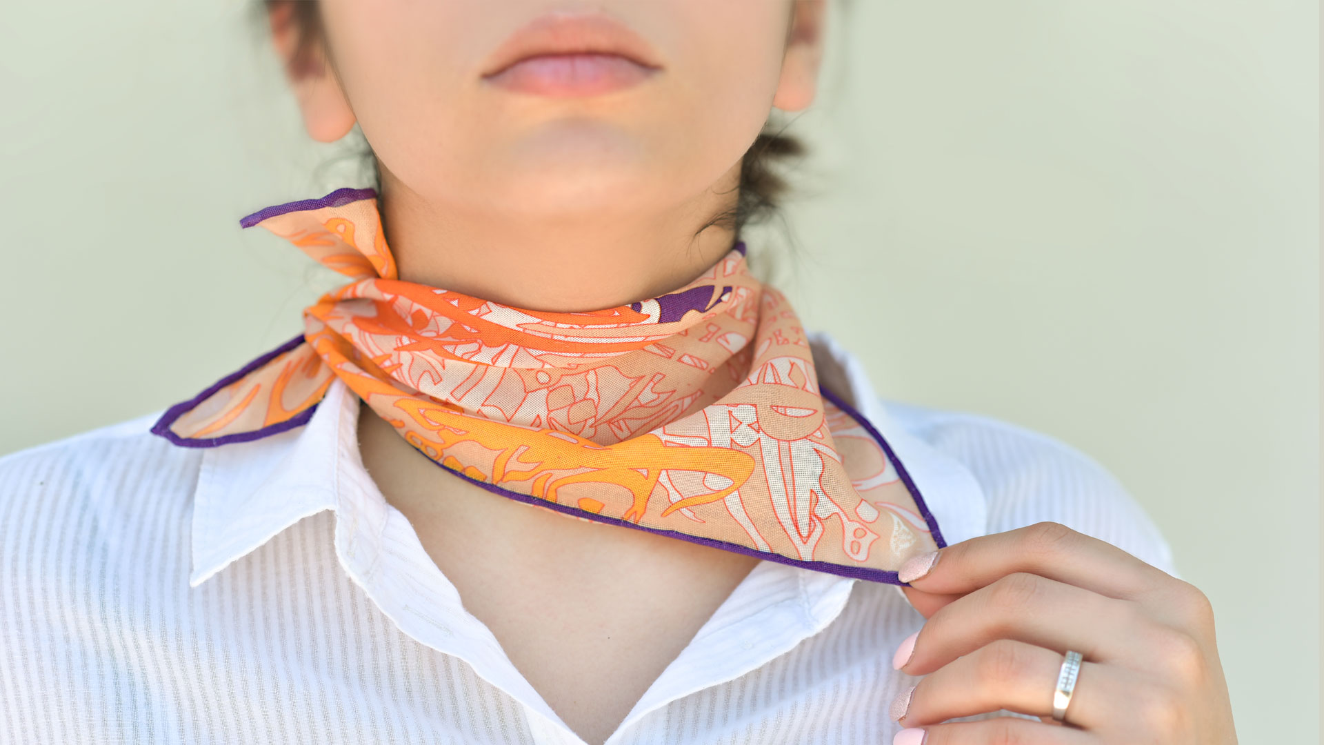 دستمال گردنی را که انتخاب می کنید باید طویل و طرحدار باشد. انتخاب دستمال گردنی به طرح گل های رنگارنگ چشم بیننده را نوازش می دهند. اگر دستمال گردن با طرح شلوغ انتخاب نمودید یادتان باشد بقیه لباسهایتان را ساده انتخاب کنید.
