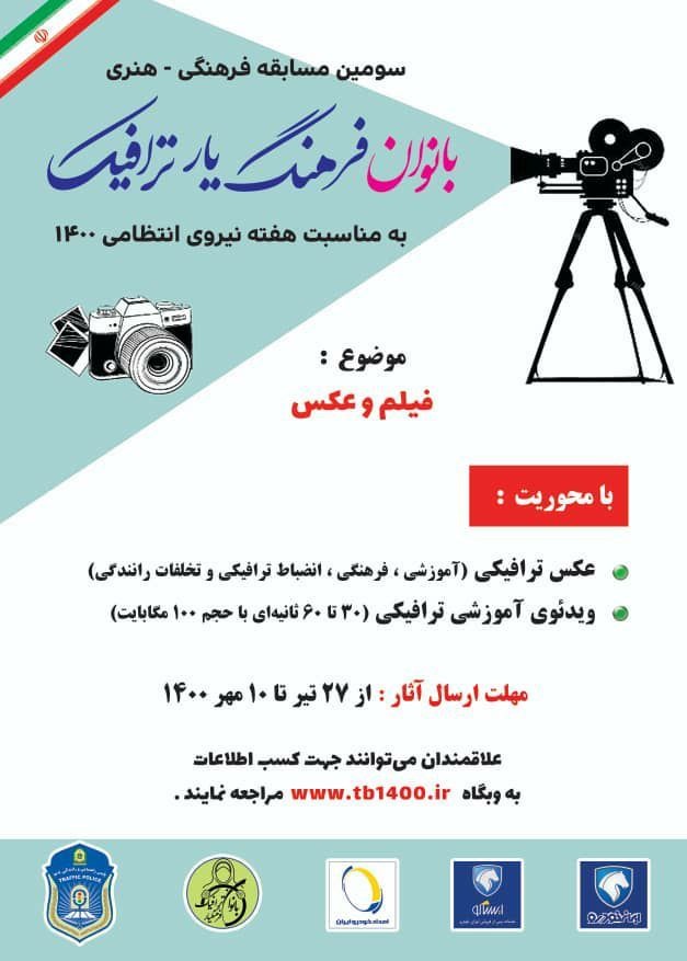 وی افزود: موضوع اين مسابقه فرهنگي هنری ارتقای انضباط ترافيکی است و محورهاي آثار ارسالي اين مسابقه شامل عکس ترافيکي (آموزشي، فرهنگي، انضباط ترافيکي و تخلفات رانندگي)، فيلم آموزش ترافيکی (حداکثر 60 ثانيهای با حجم 100مگابايت) است.