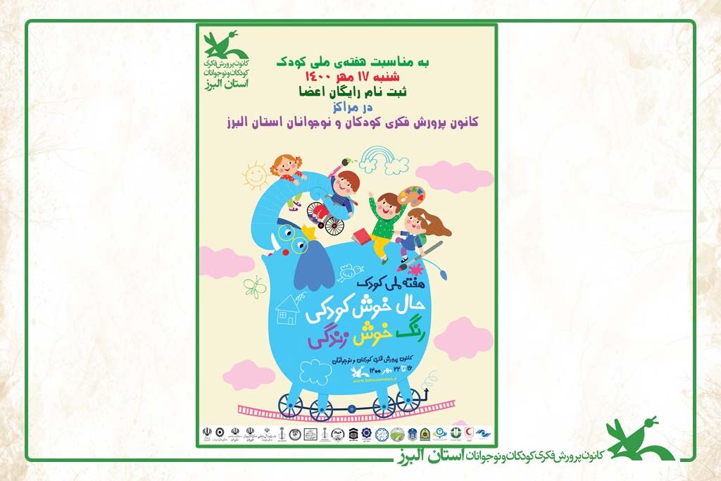 کودکان و نوجوانان روز شنبه ۱۷ مهر ۱۴۰۰ به مناسبت هفته ملی کودک به صورت رایگان، عضو مراکز کانون استان البرز میشوند.