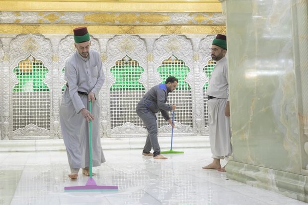 در این مراسم که با حضور جمعی از خادمان عتبه حسینی انجام شد ضریح مقدس، سنگفرشها و فرشهای آستان مقدس اباعبدالله غبارروبی و شستشو شد.