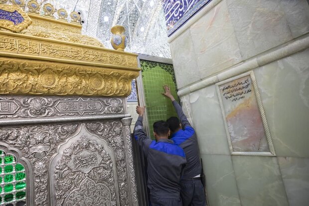 ضریح مقدس امام حسین(ع) غبارروبی شد